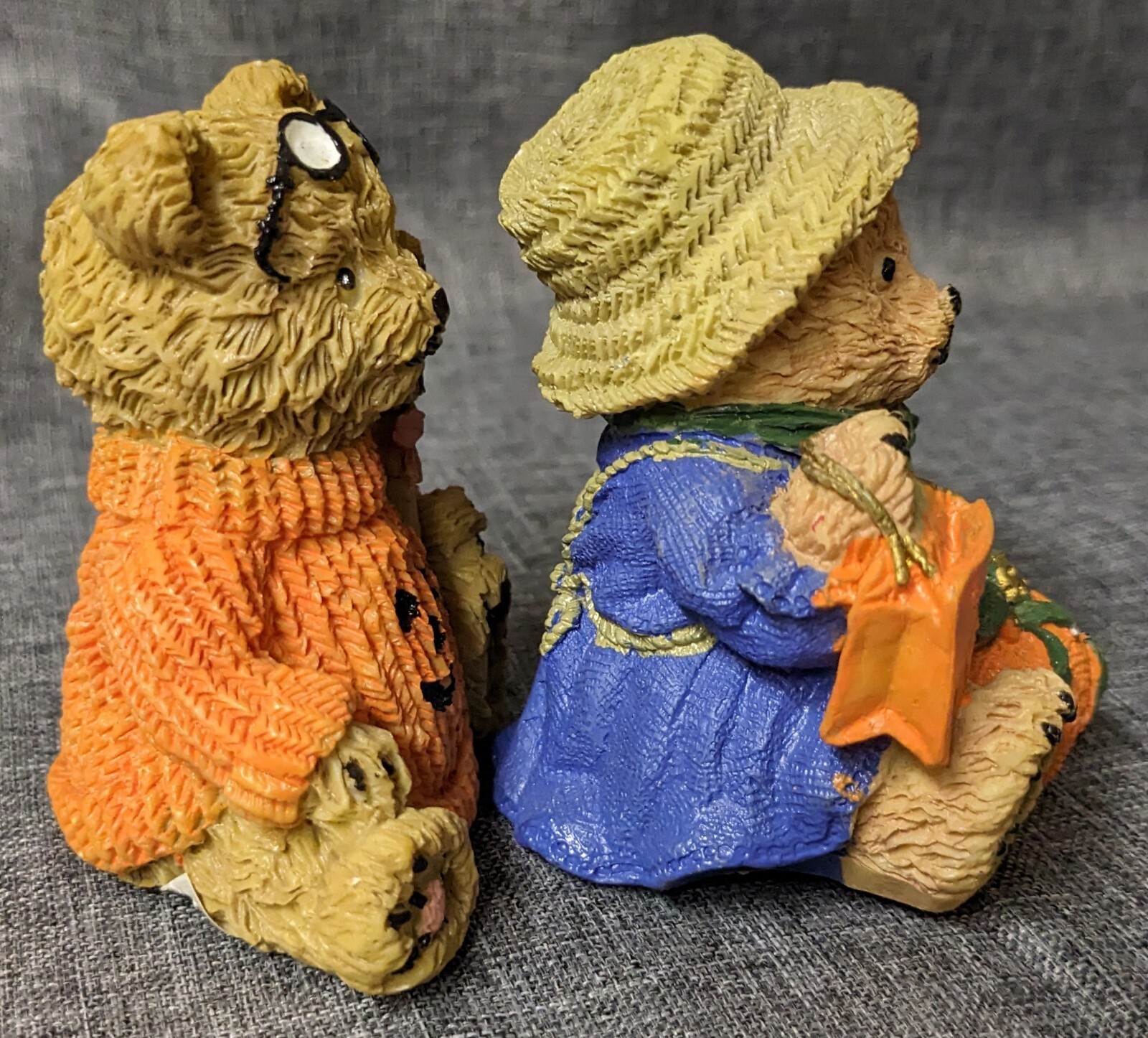 Set Of 2 Halloween Teddy Bears Pumpkin Patch Trick Or Treat Resin 1990's 3 T