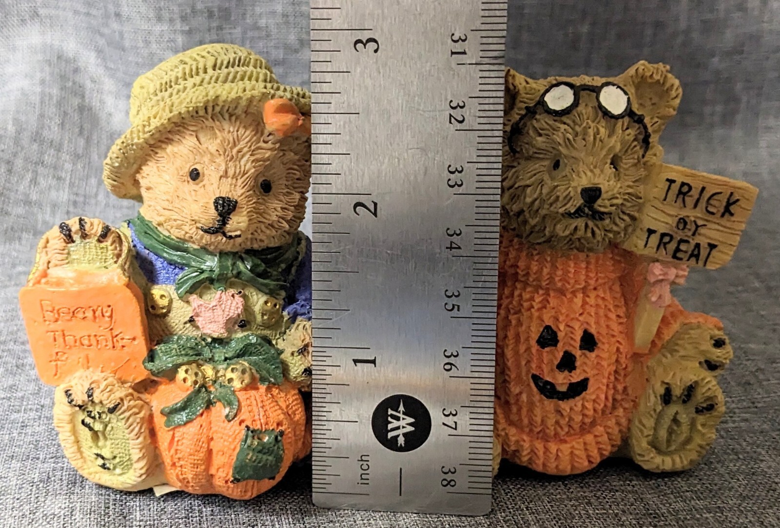 Set Of 2 Halloween Teddy Bears Pumpkin Patch Trick Or Treat Resin 1990's 3" T