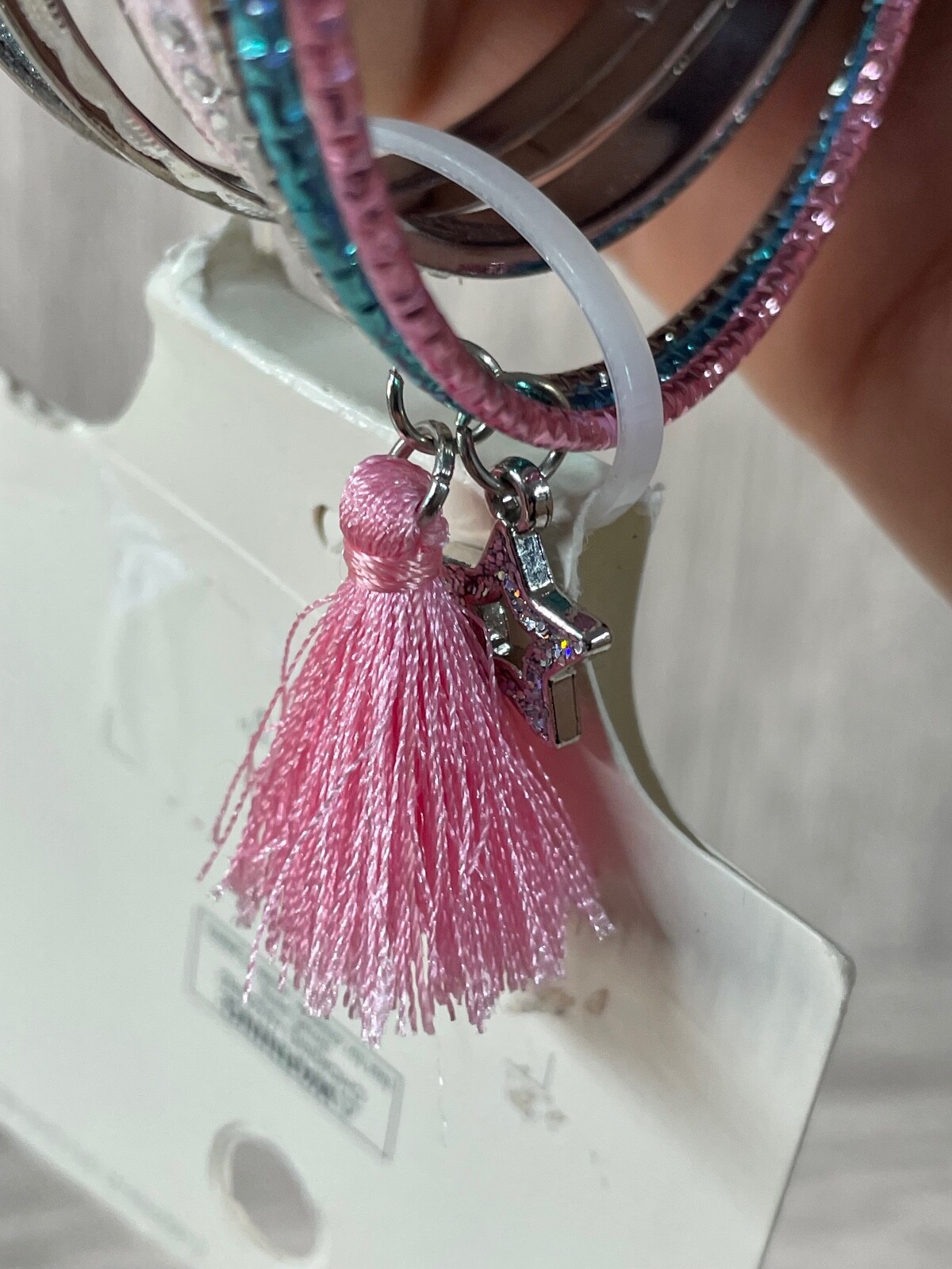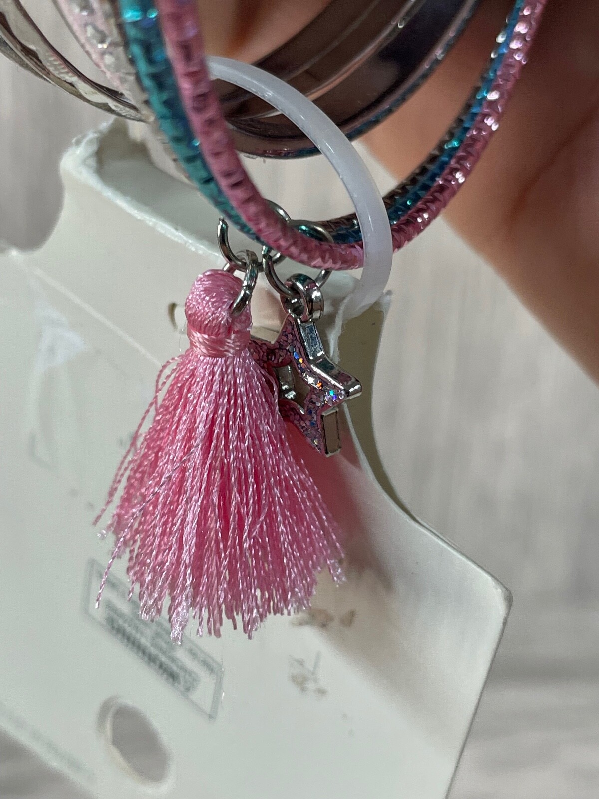 как выглядит Cat Jack Girls set 6 Bangle Bracelets Pink Blue Silver New фото