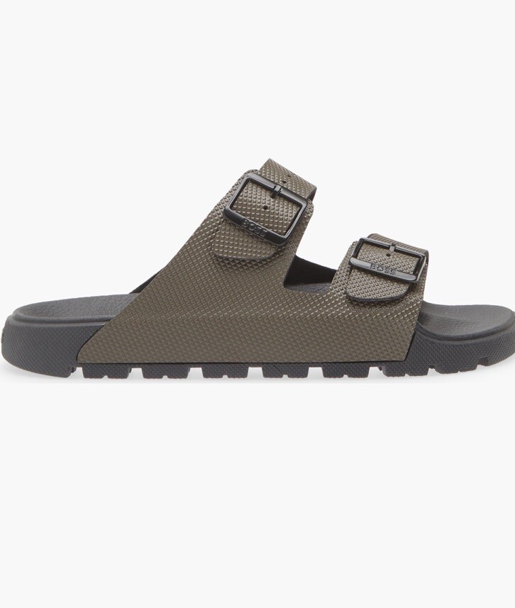как выглядит New Authentic Hugo Boss Surf Slide Beach Sandals Logo Olive 7 Or 8 245 фото
