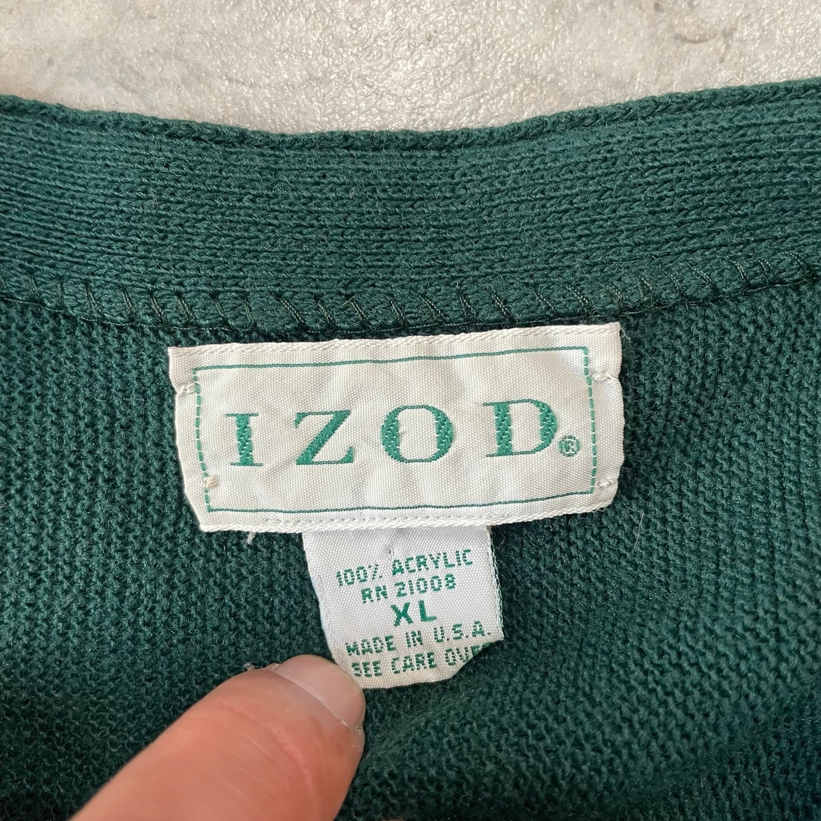 как выглядит Vintage 80s IZOD Mens XL Green Acrylic Cardigan Made in USA фото