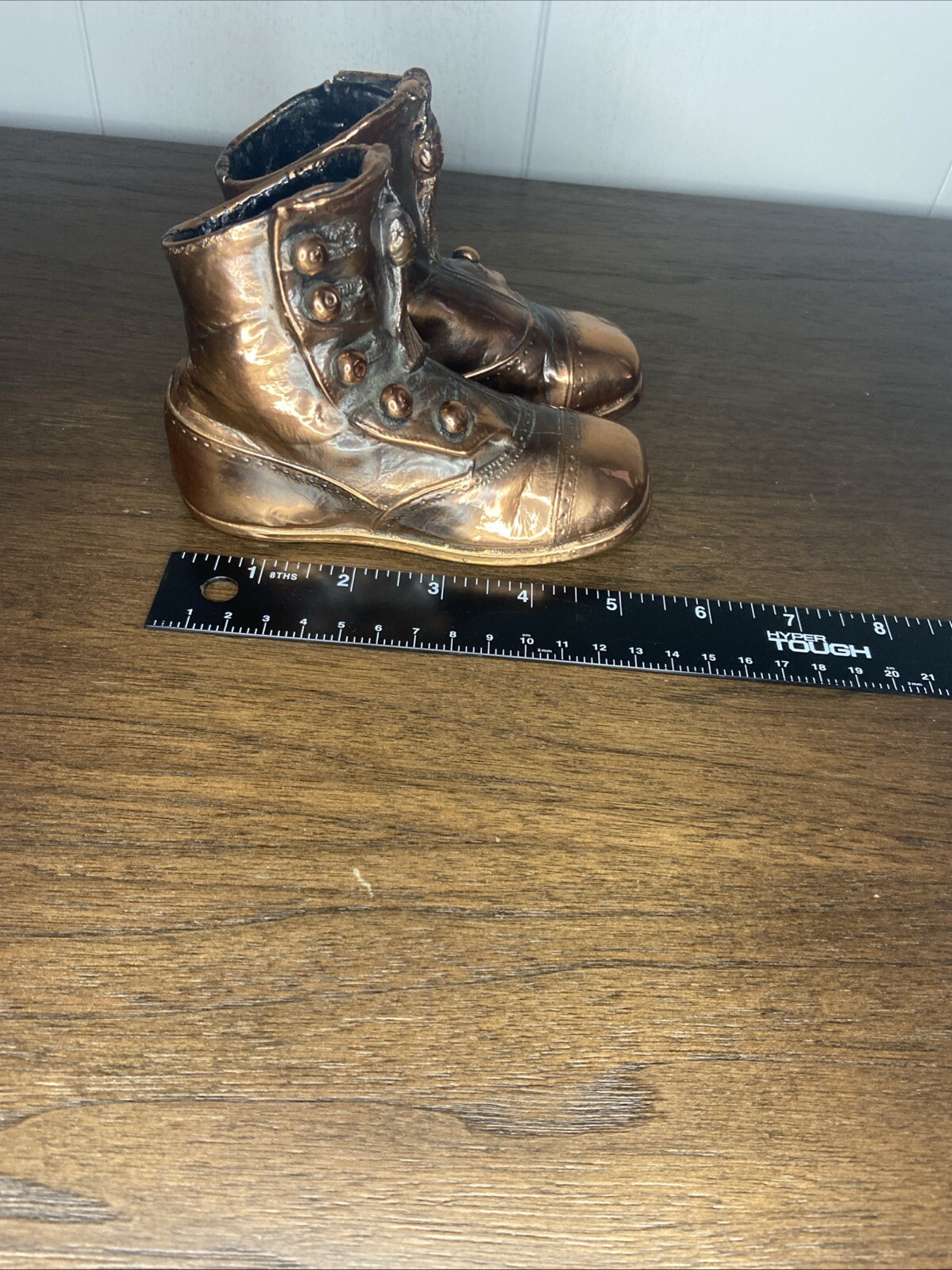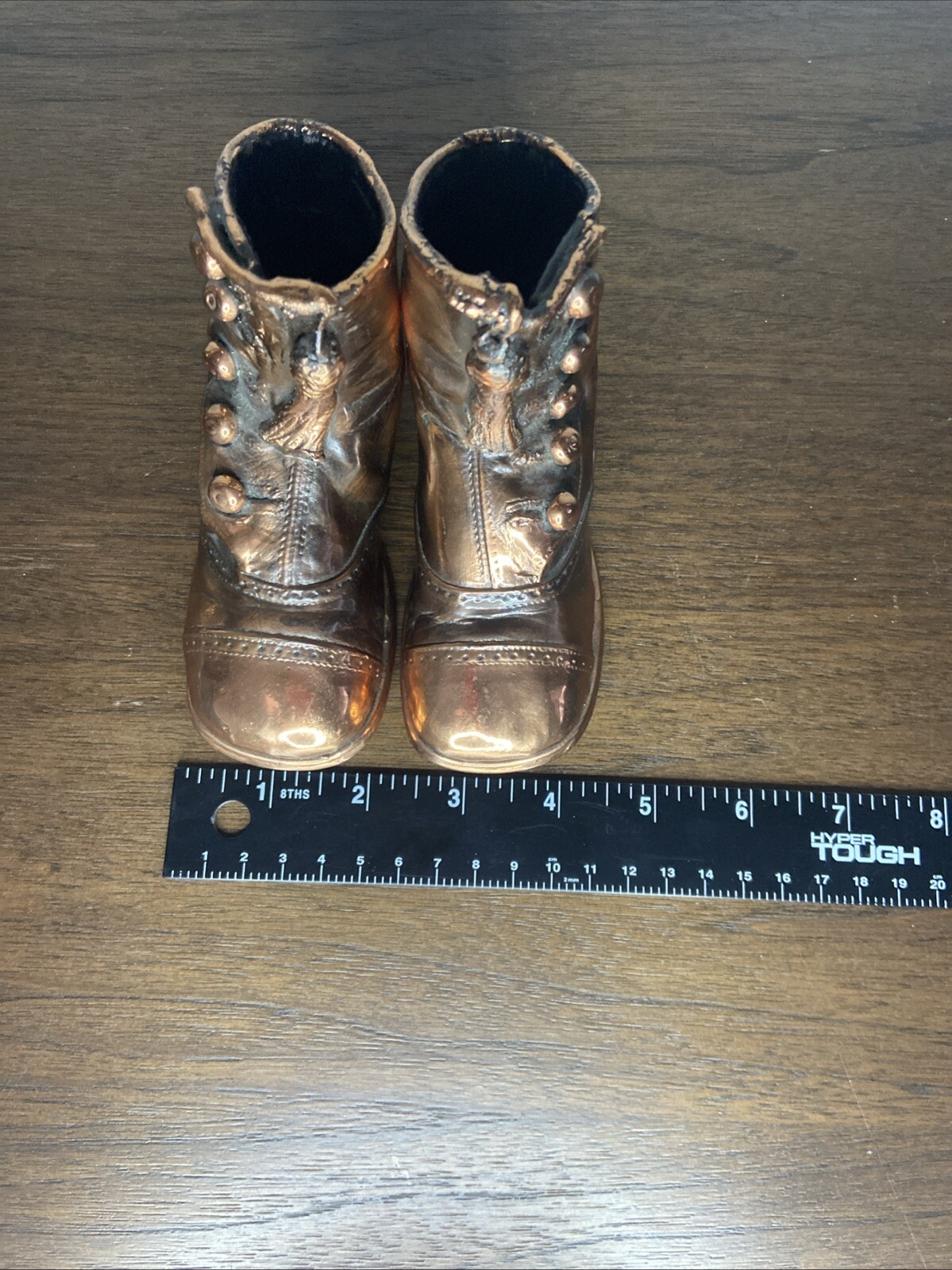 Antique Vintage Bronzed Victorian Baby Child Shoes High top Button Up Pair