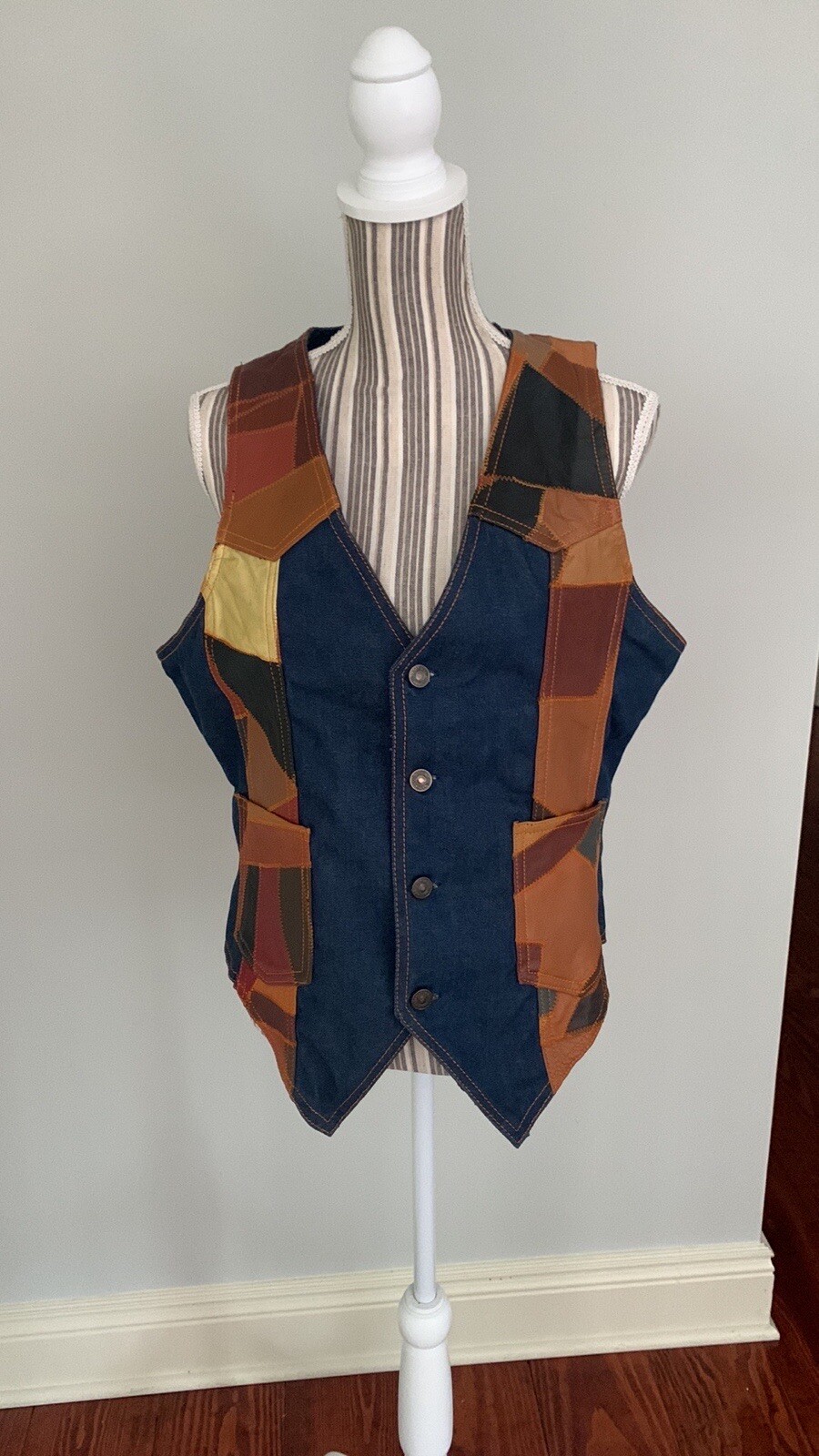 как выглядит Vintage Rosemary 70 s Patchwork Denim And Leather Bell Bottoms And Matching Vest фото