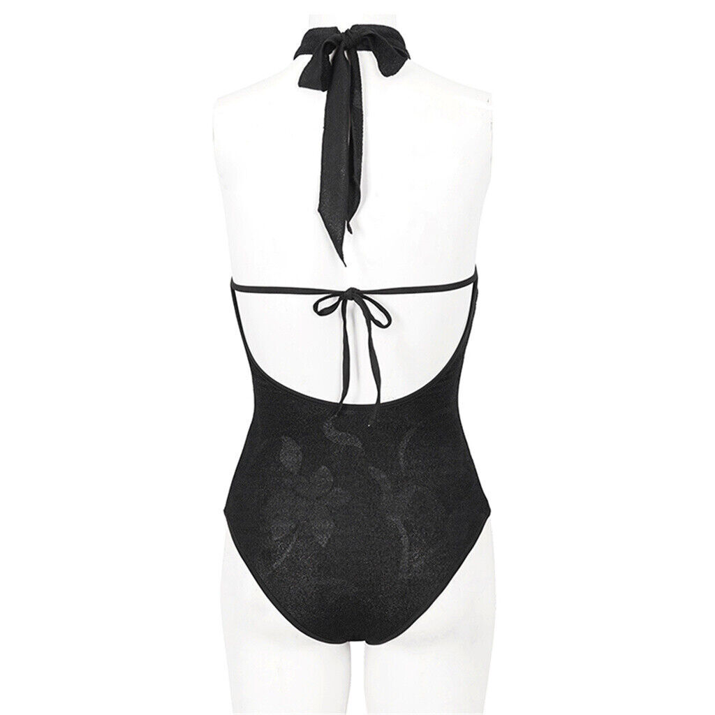 Devil Fashion Women Black Gothic Vintage Jabot Cutout One-Piece Swimsuit