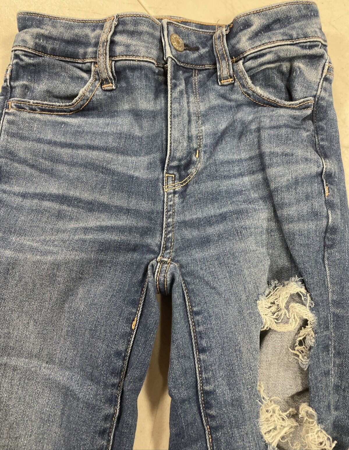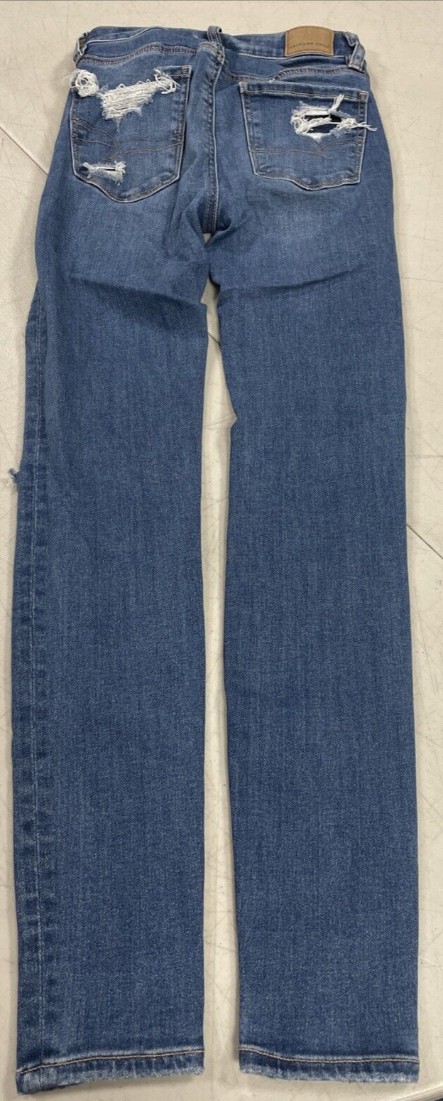 American Eagle Next Level Stretch Hi-Rise Jegging Distressed Jeans Blue Sz 00 R