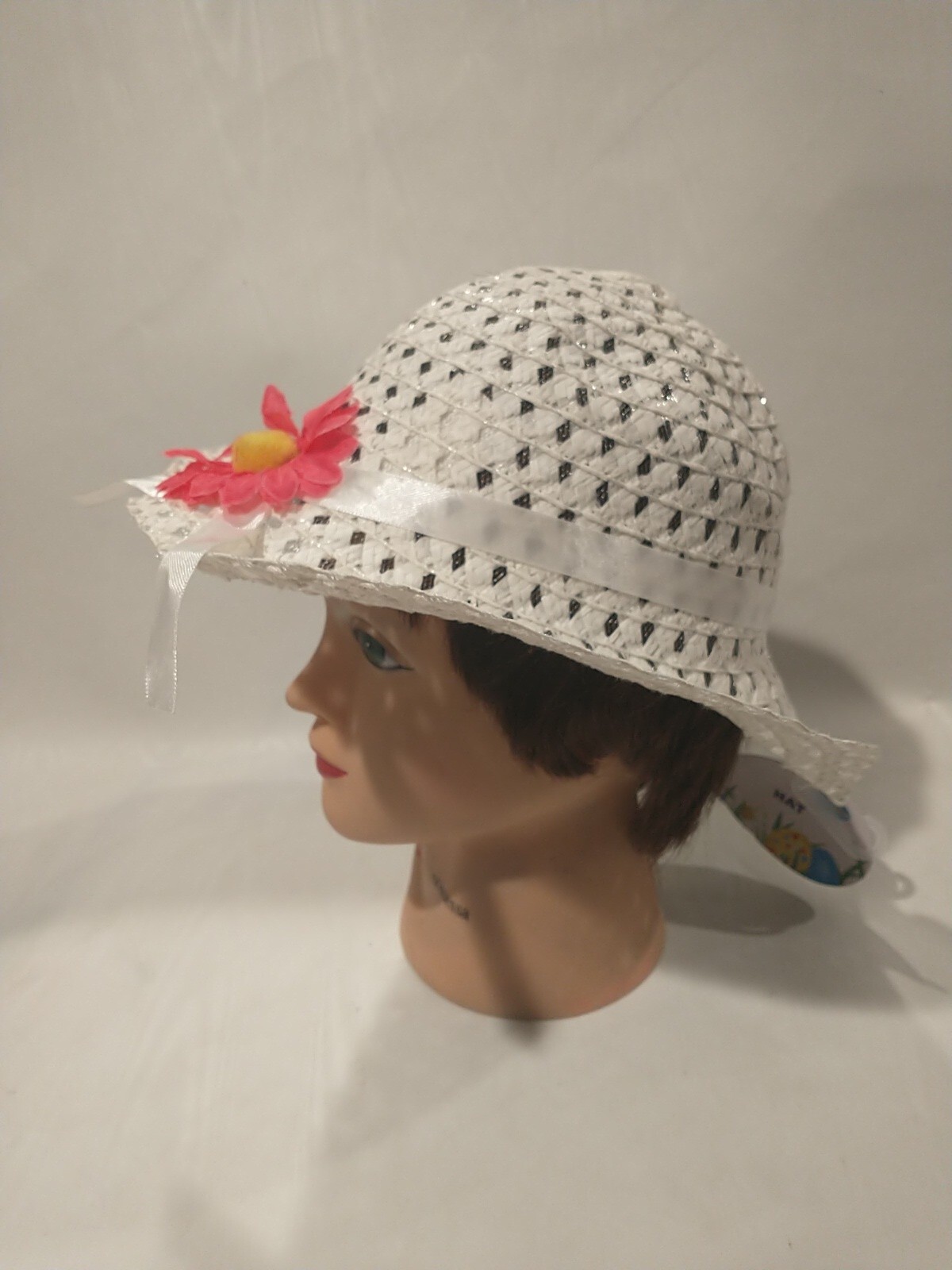 как выглядит Girls Kids Children Easter Craft Straw Hemp Flower Travel Bucket Cap Sun Hat фото
