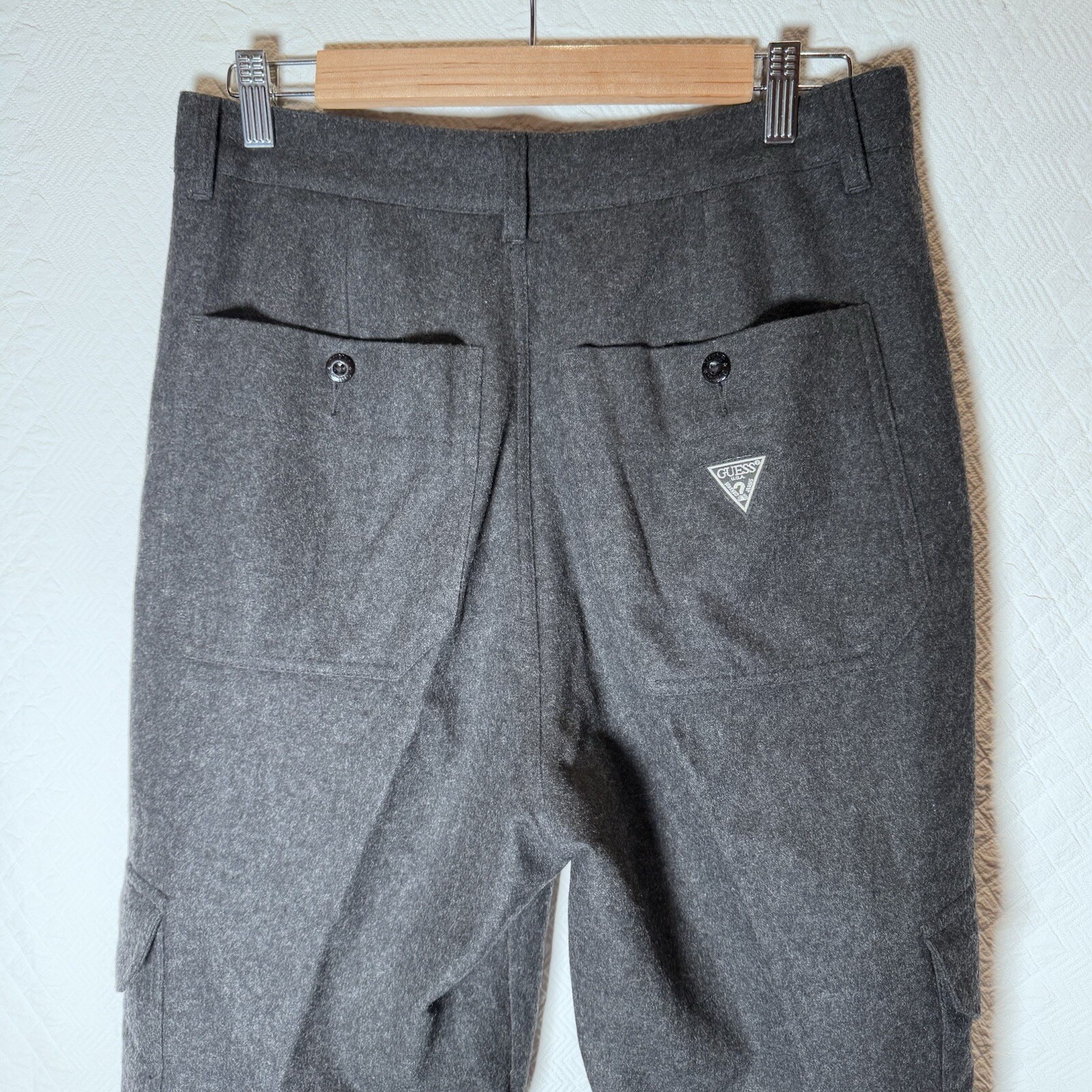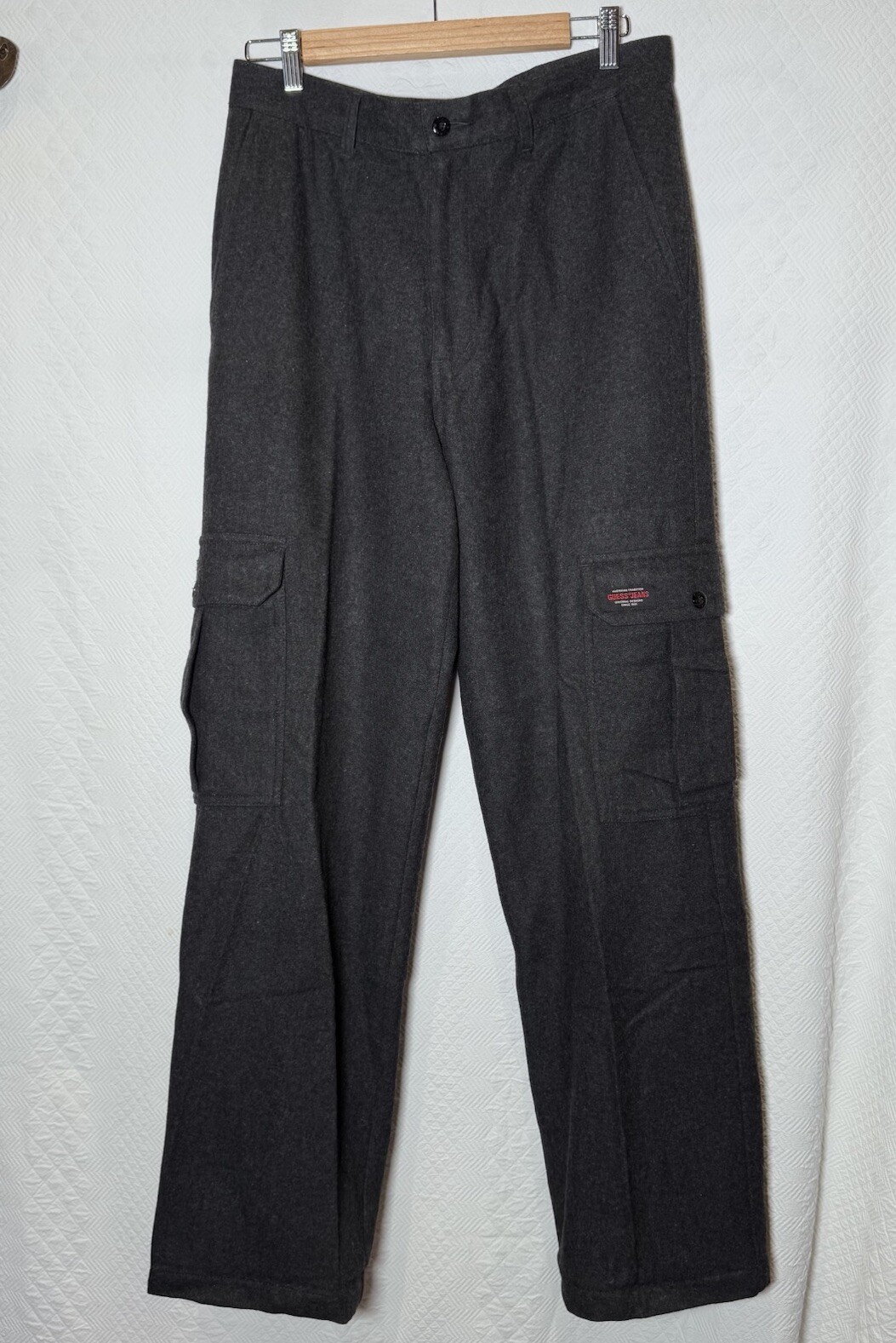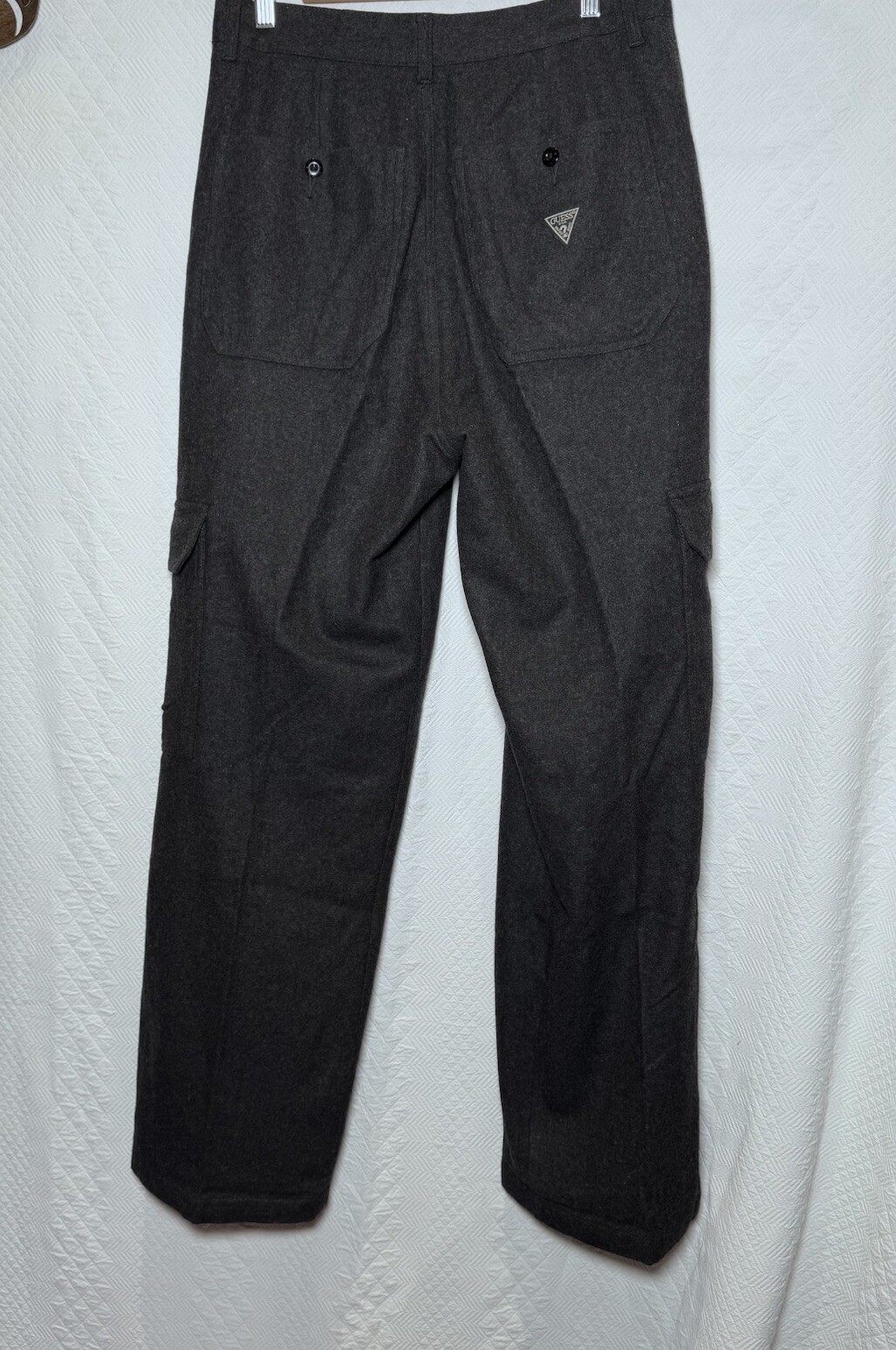 Guess Jeans Vintage Wool Blend Charcoal Gray Wide Leg Cargo Pants Size 31