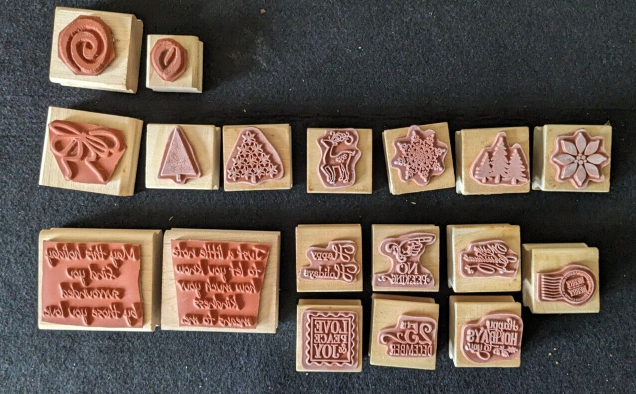 Recollections Wood Rubber Stamp Set Christmas Holiday 0018
