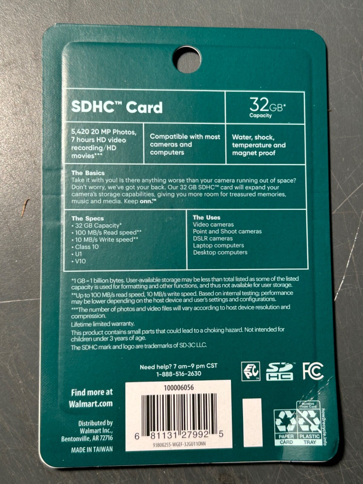 Keep Onn 32GB Class 10 U1 SDHC Flash Memory Card up to 100MB/S read speed New