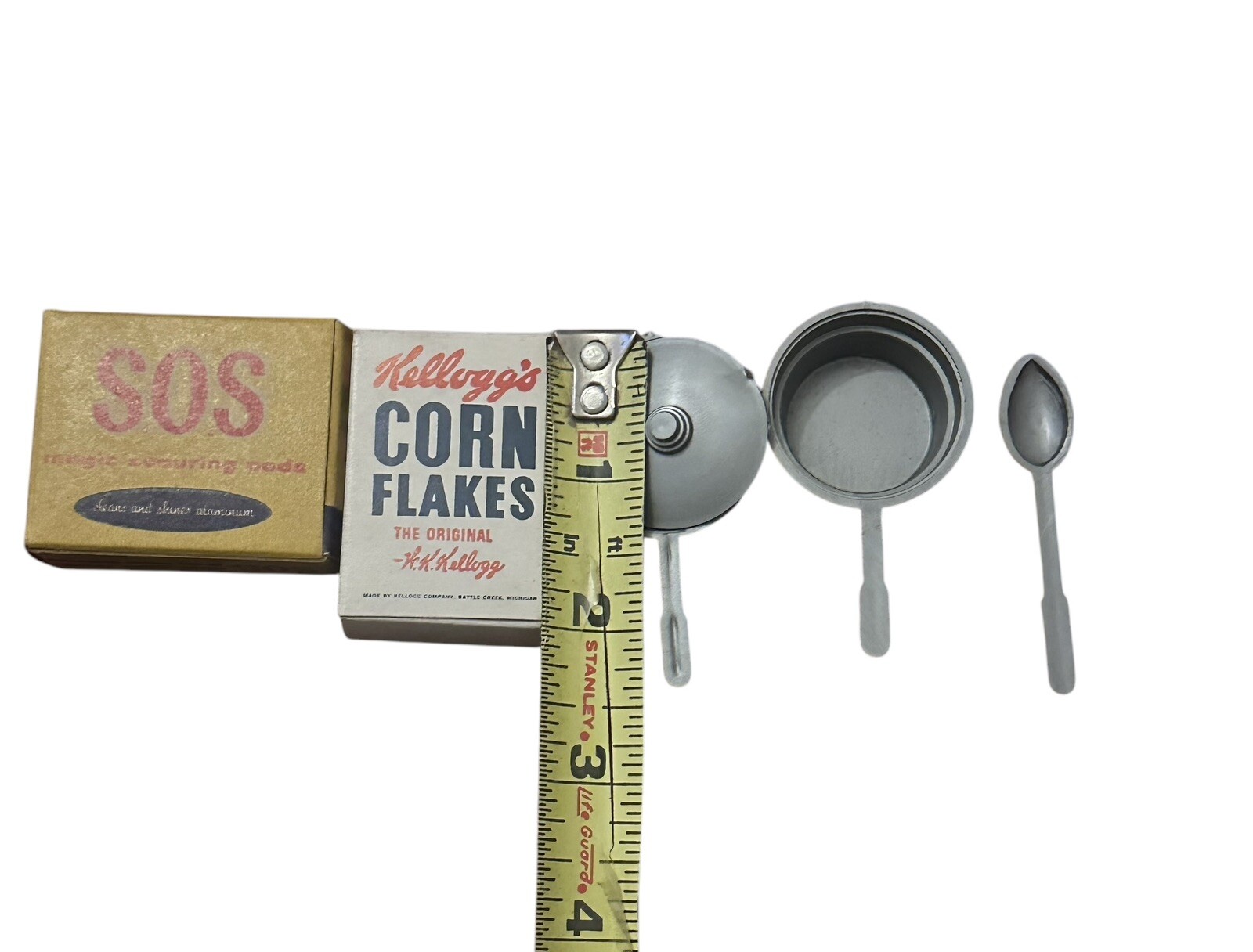 как выглядит Vtg Cardboard Wolverine Products Toy Kitchen Food Box SOS Pots Spoon Plastic фото