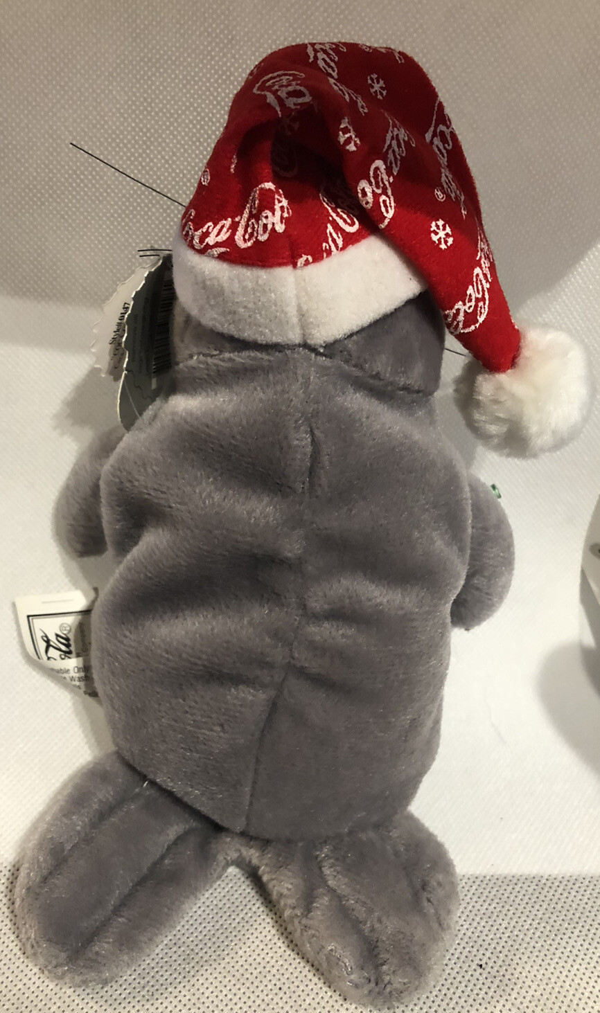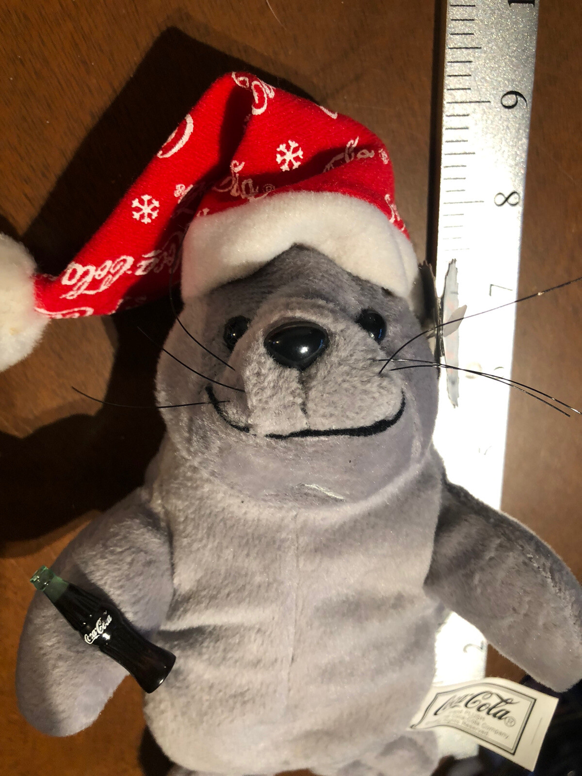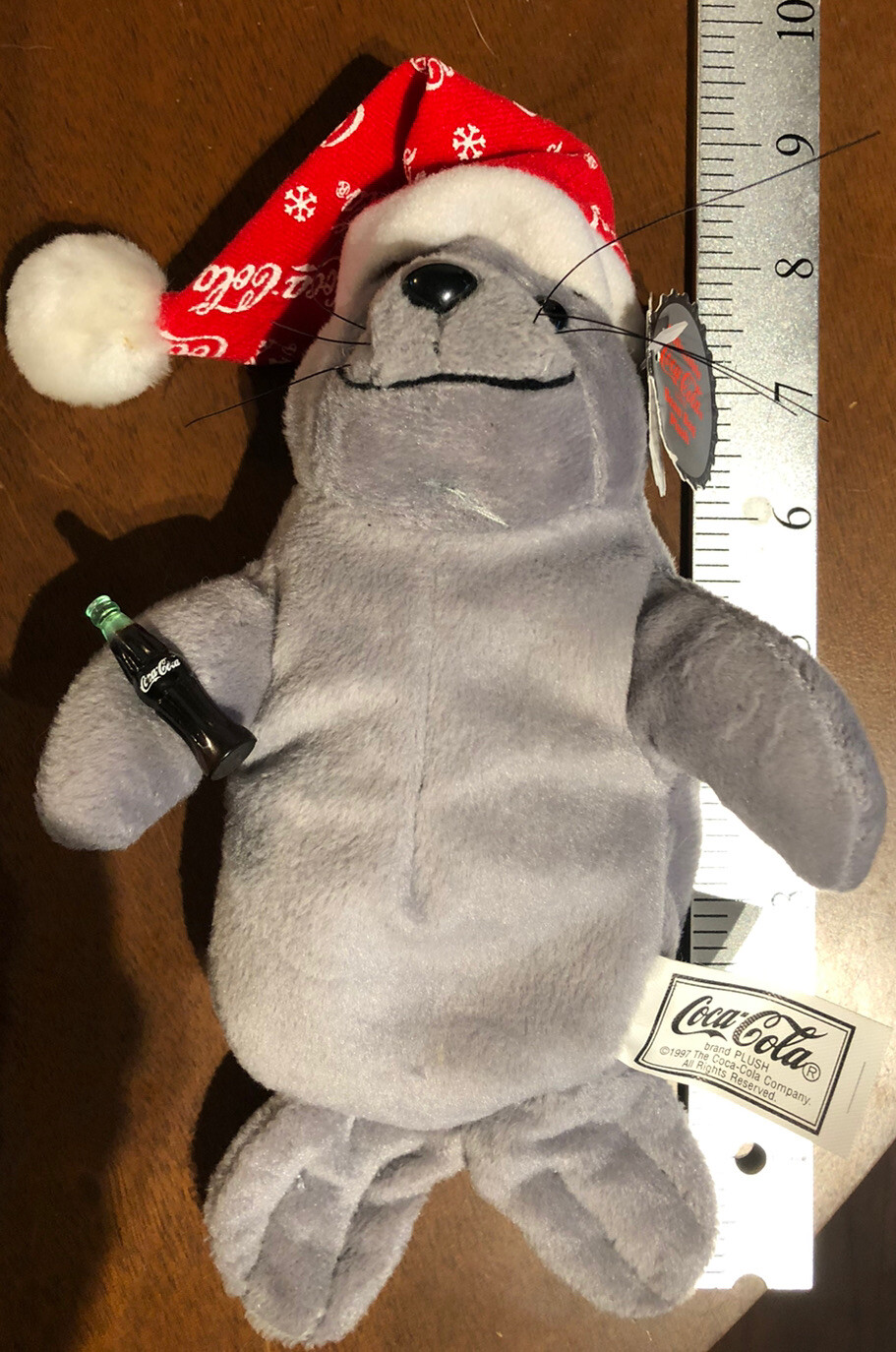 • Coca Cola Seal Plush With Santa Hat Coca Cola Bottle Tags 1997 Christmas Vtg