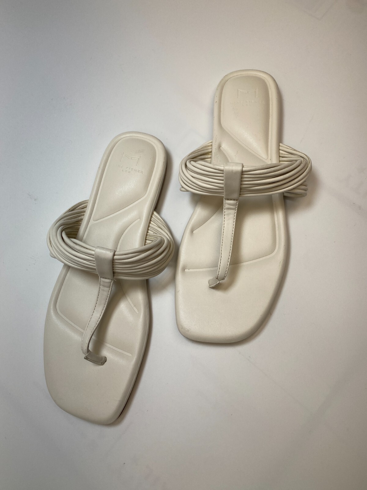 как выглядит Marc Fisher Womens Tanya Cream Flat Square Toe Sandal Sz 8.5 фото