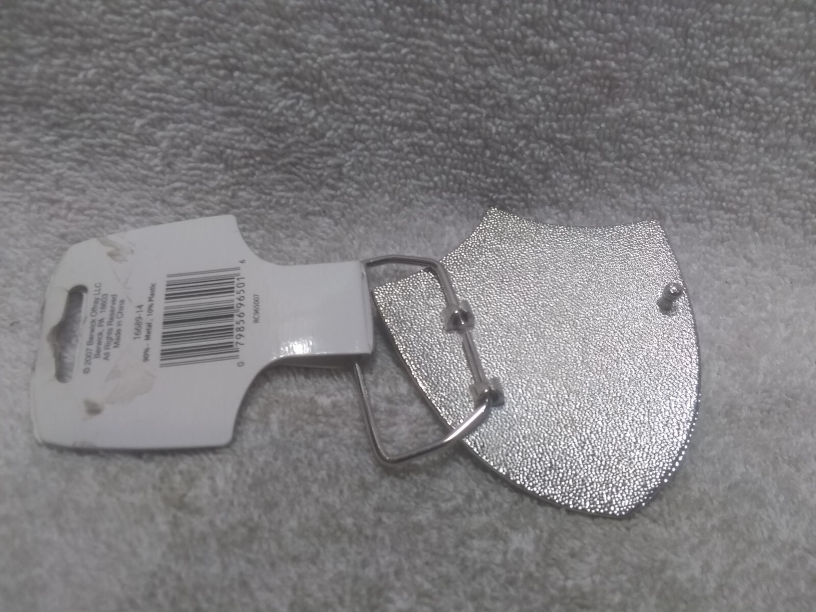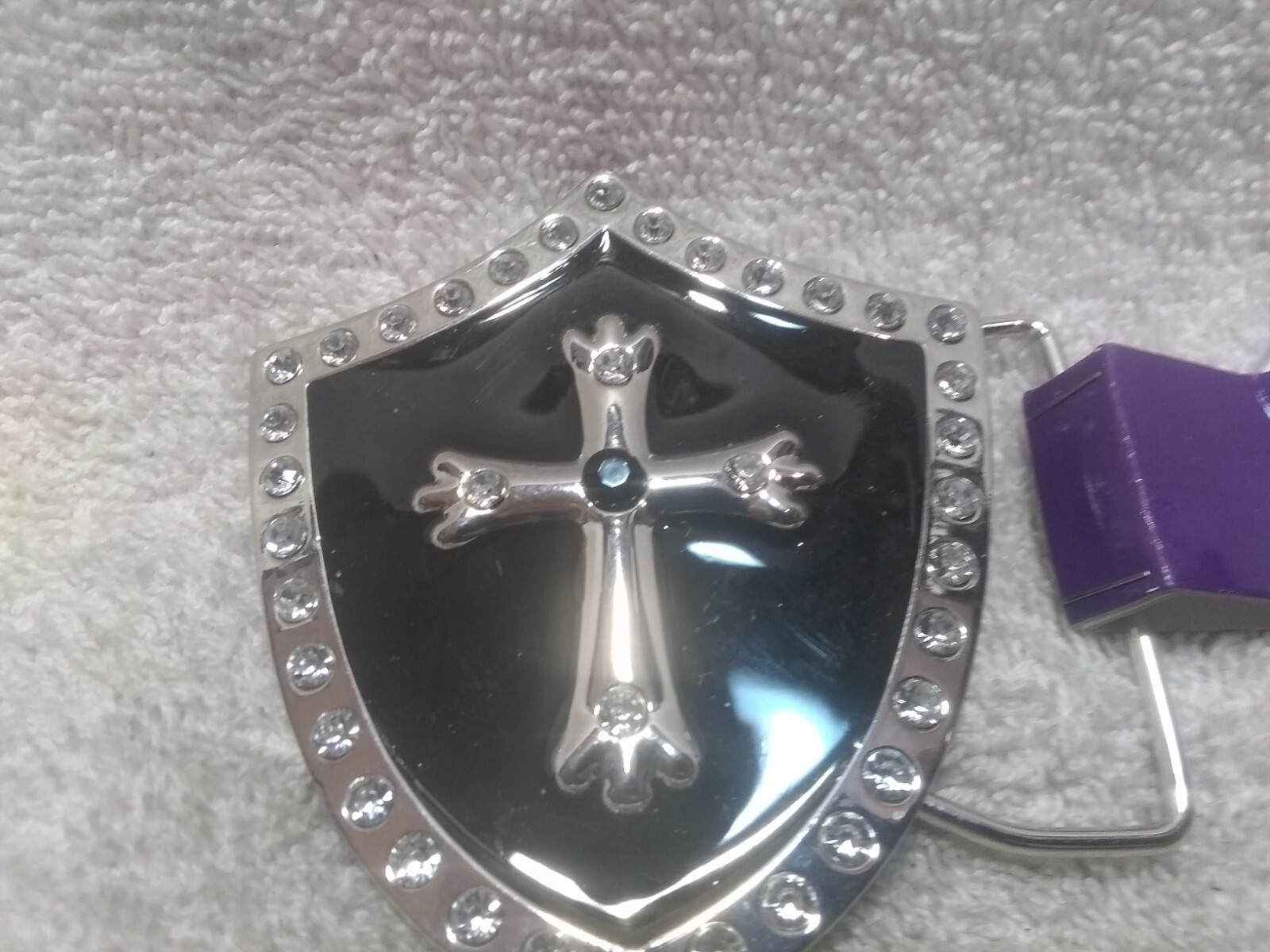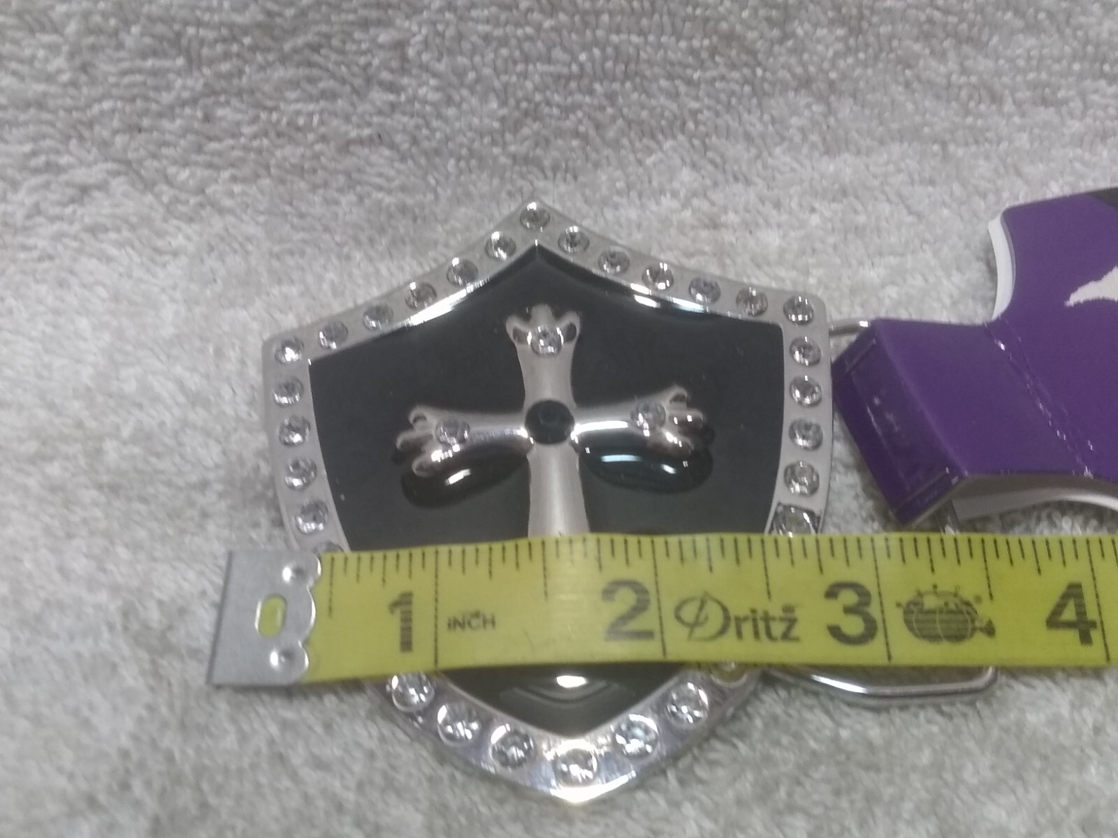 как выглядит Silver Black Rhinestone Filled Shield With Center Cross Belt Buckle NIP фото