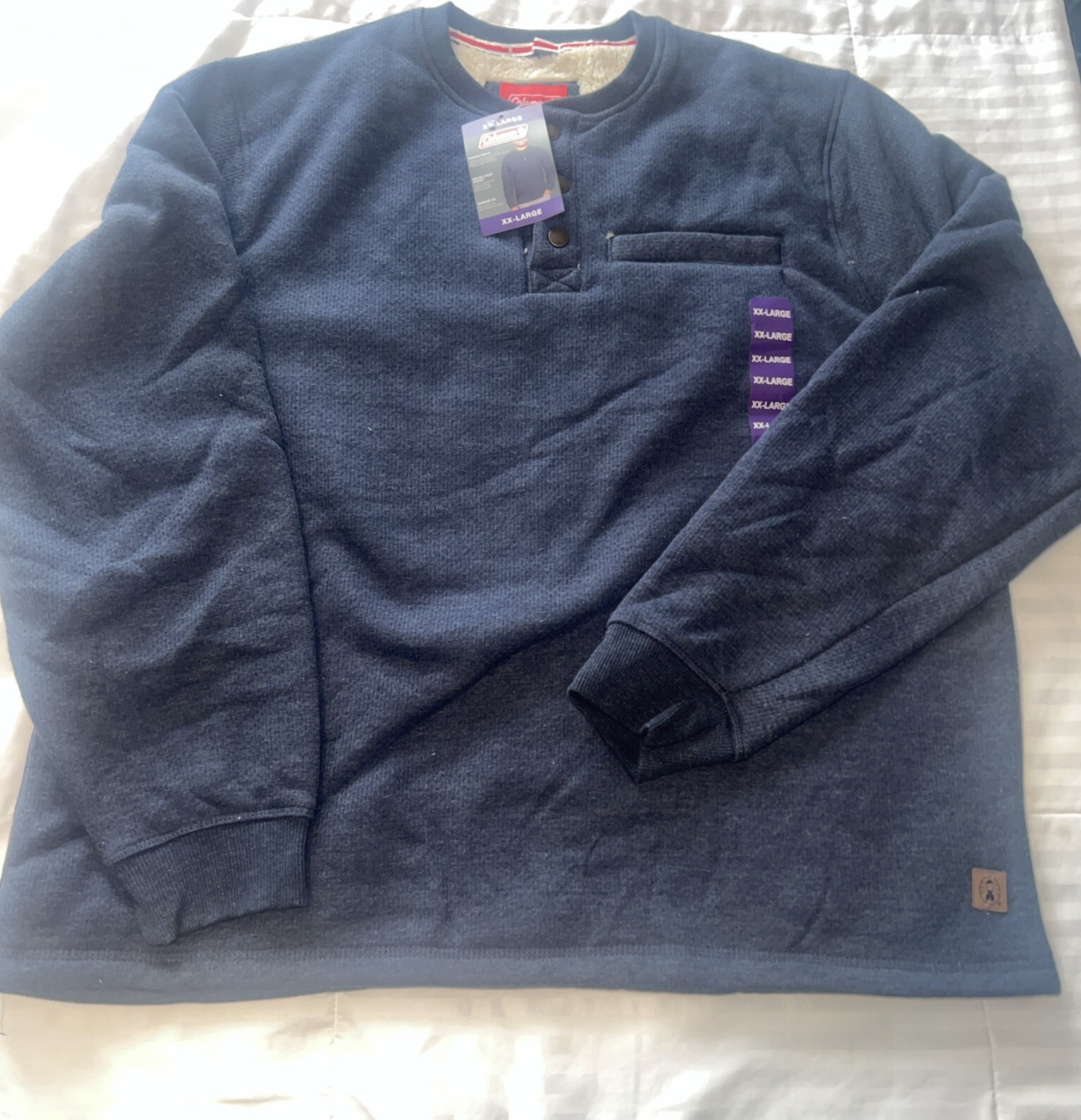 Coleman 1/4 Snap Bonded Waffle Sherpa Lined Men's XXL Henley Blue New With tags