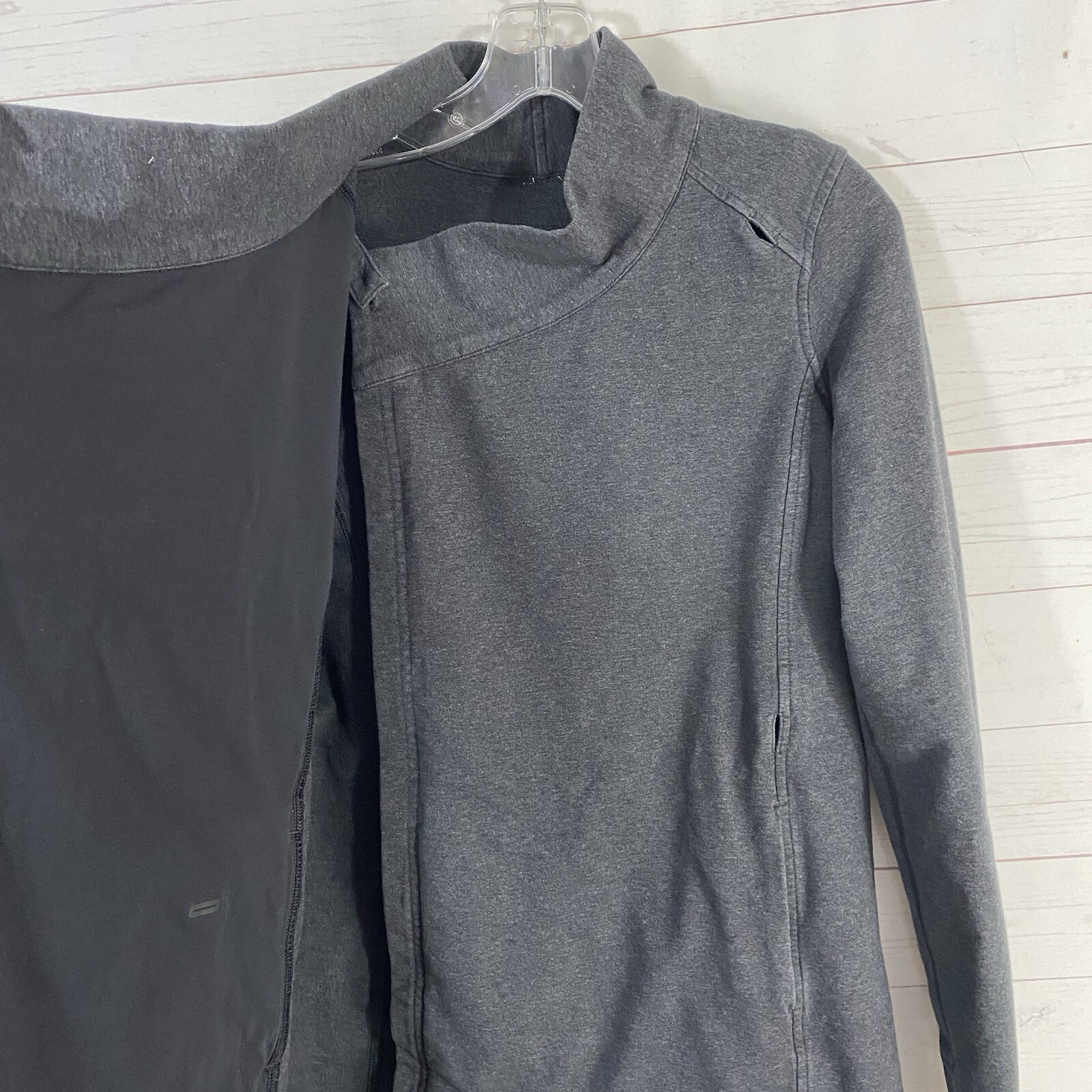 как выглядит Lululemon Womens Wrap Jacket Size 4 Gray Pockets Thumb Holes Cotton Blend фото