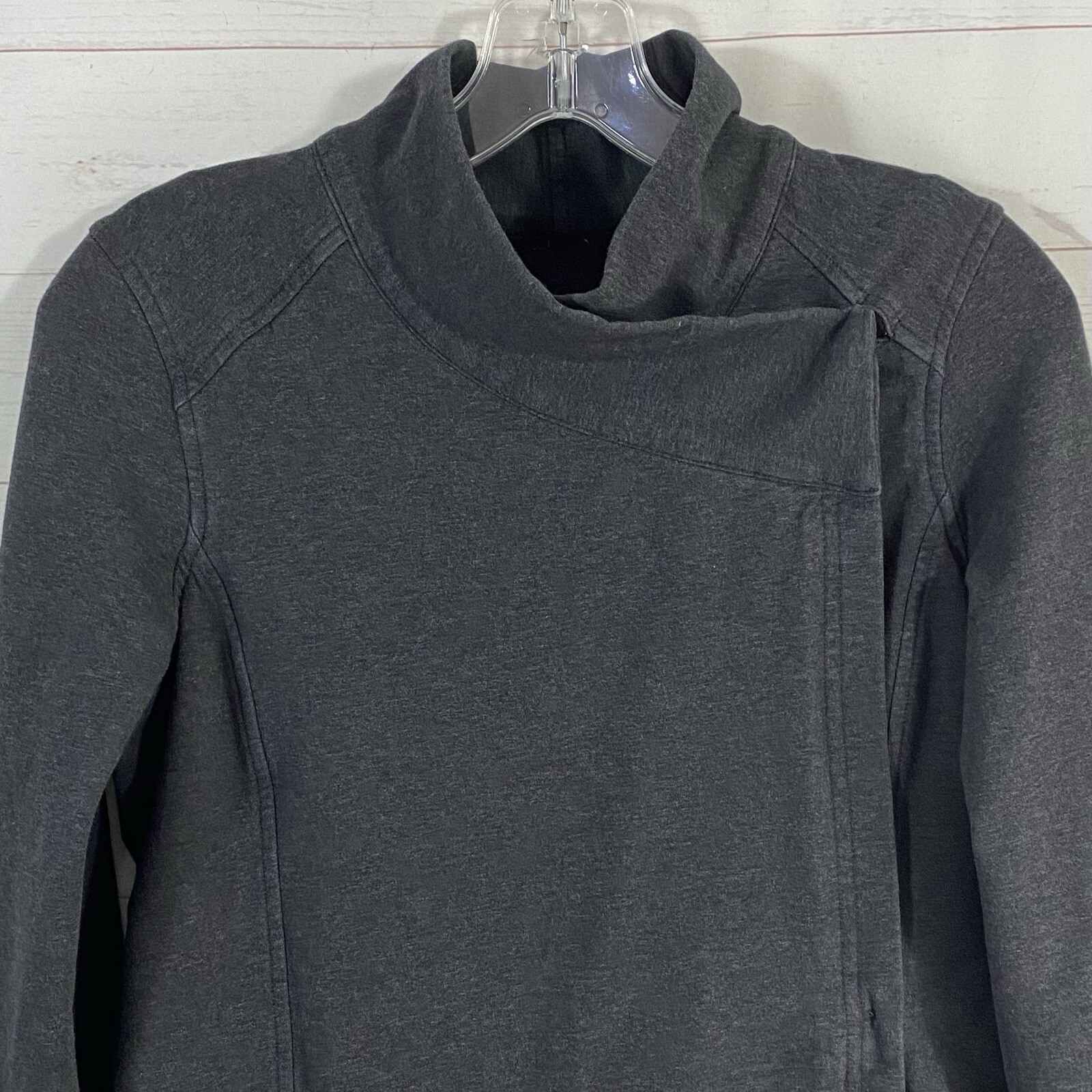 Lululemon Womens Wrap Jacket Size 4 Gray Pockets Thumb Holes Cotton Blend