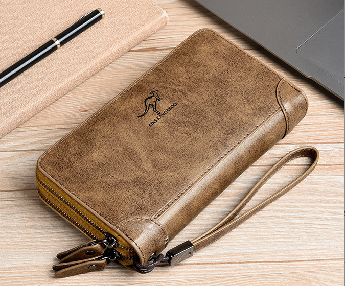 Men double zip wallet phone Wallet Holder Blocking Pocket RFID Protected