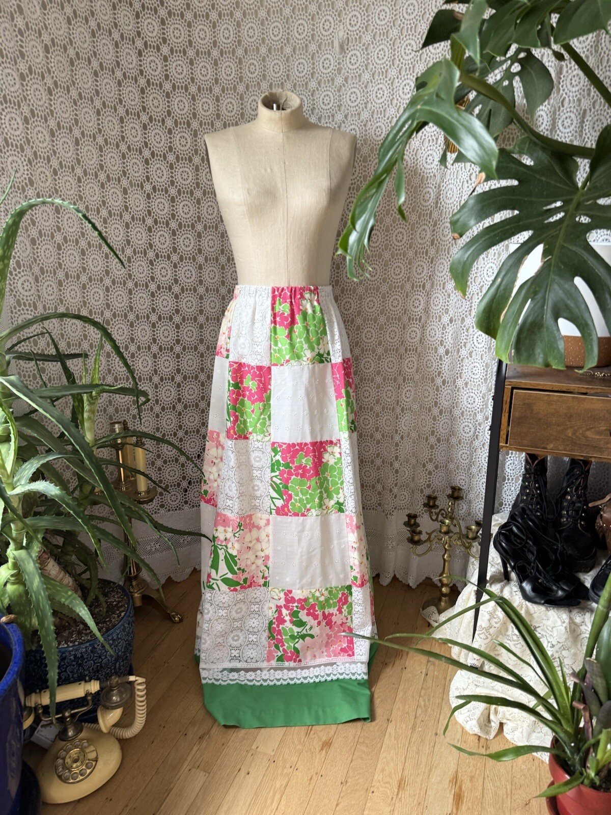 Maxi Boho Festival Hippie Skirt Vintage 60s 70s Patchwork Eyelet Lace