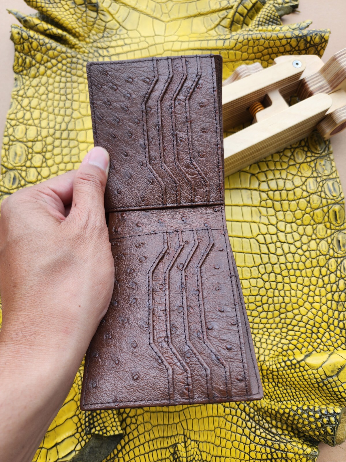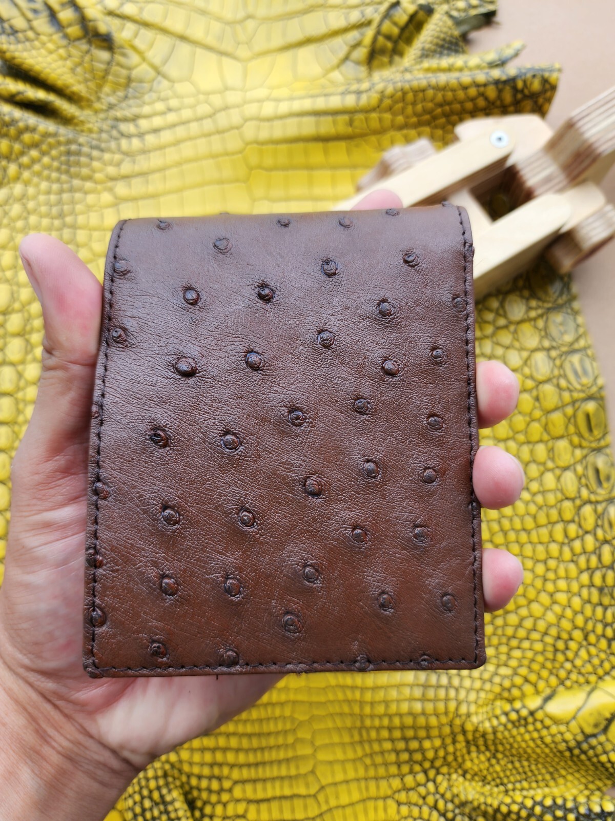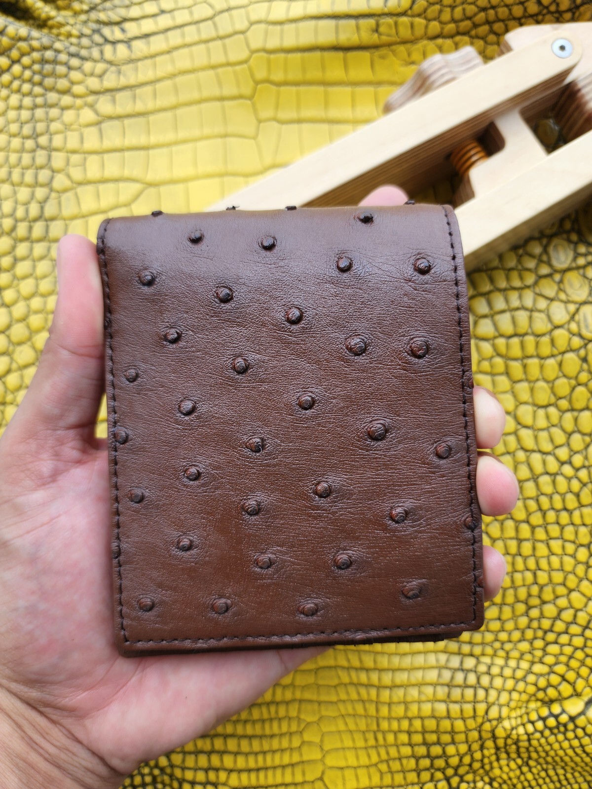 как выглядит Dark Brown 100 Doubleside Genuine Ostrich Leather skin Men Bifold Wallets фото