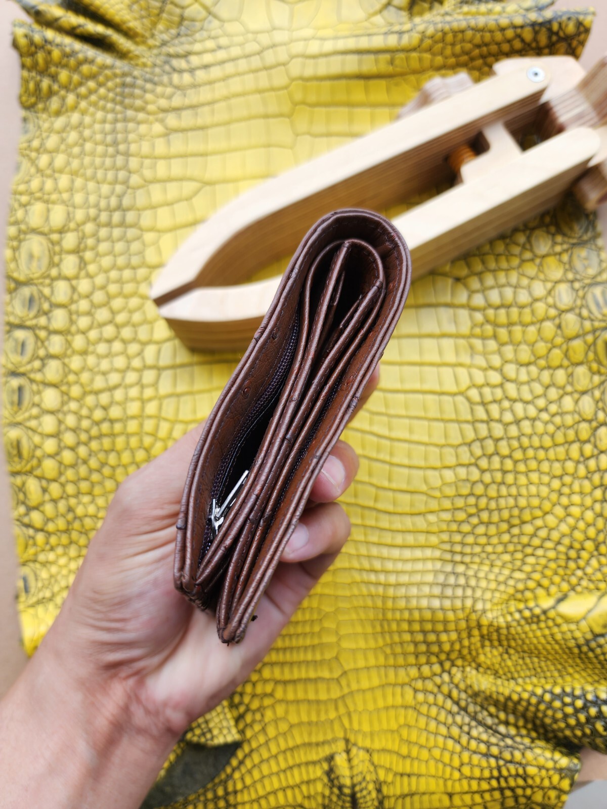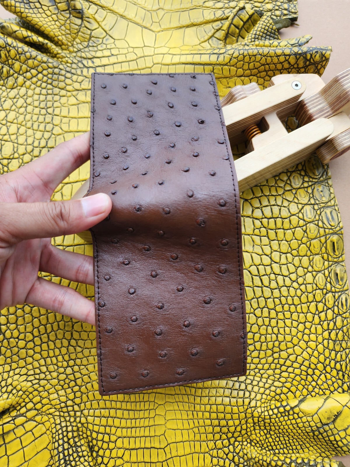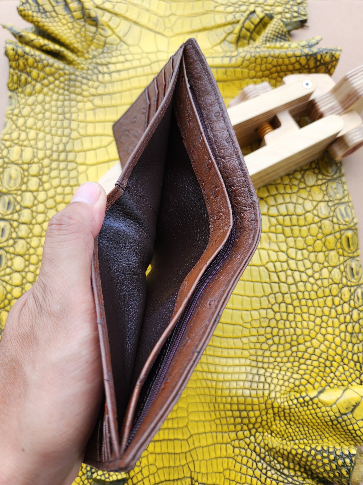 как выглядит Dark Brown 100 Doubleside Genuine Ostrich Leather skin Men Bifold Wallets фото