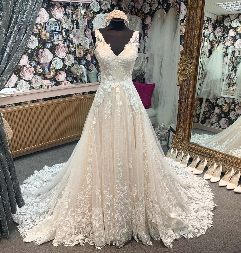 как выглядит Bohemian Light Champagne Wedding Dresses A Line Sleeveless Lace Bridal Gowns фото