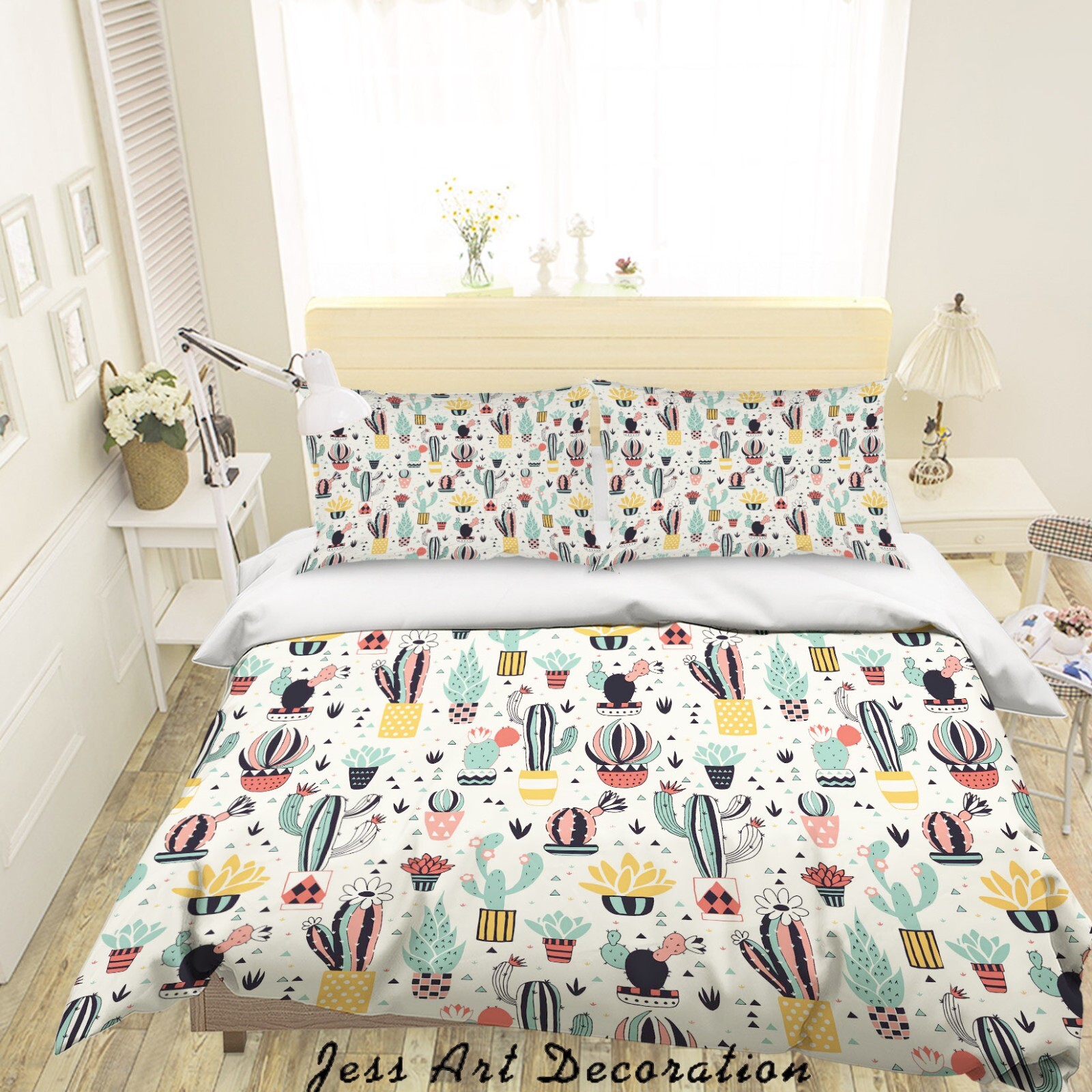 3D Cactus Floral Pattern Quilt Cover Set Duvet Cover Bedding Pillowcases