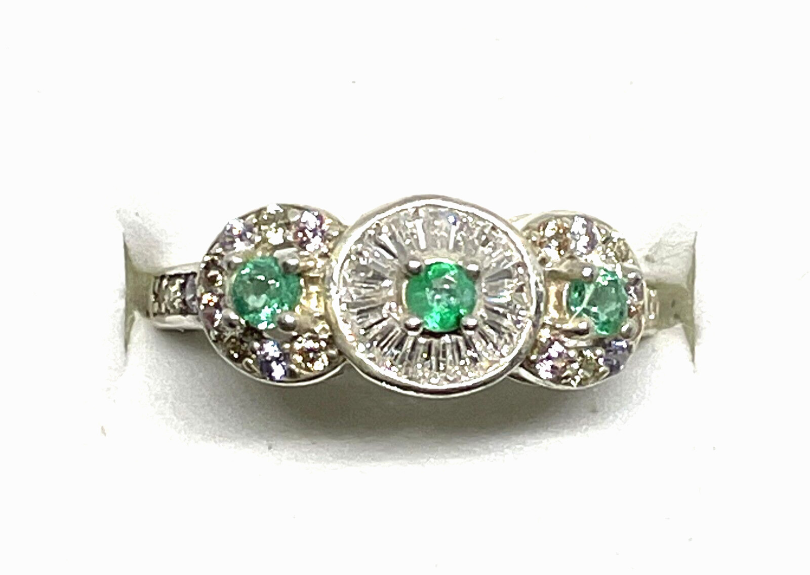 как выглядит 0.16 ct. Natural Colombian Emerald Ring - Size 5 - Sterling Silver 300 Value фото