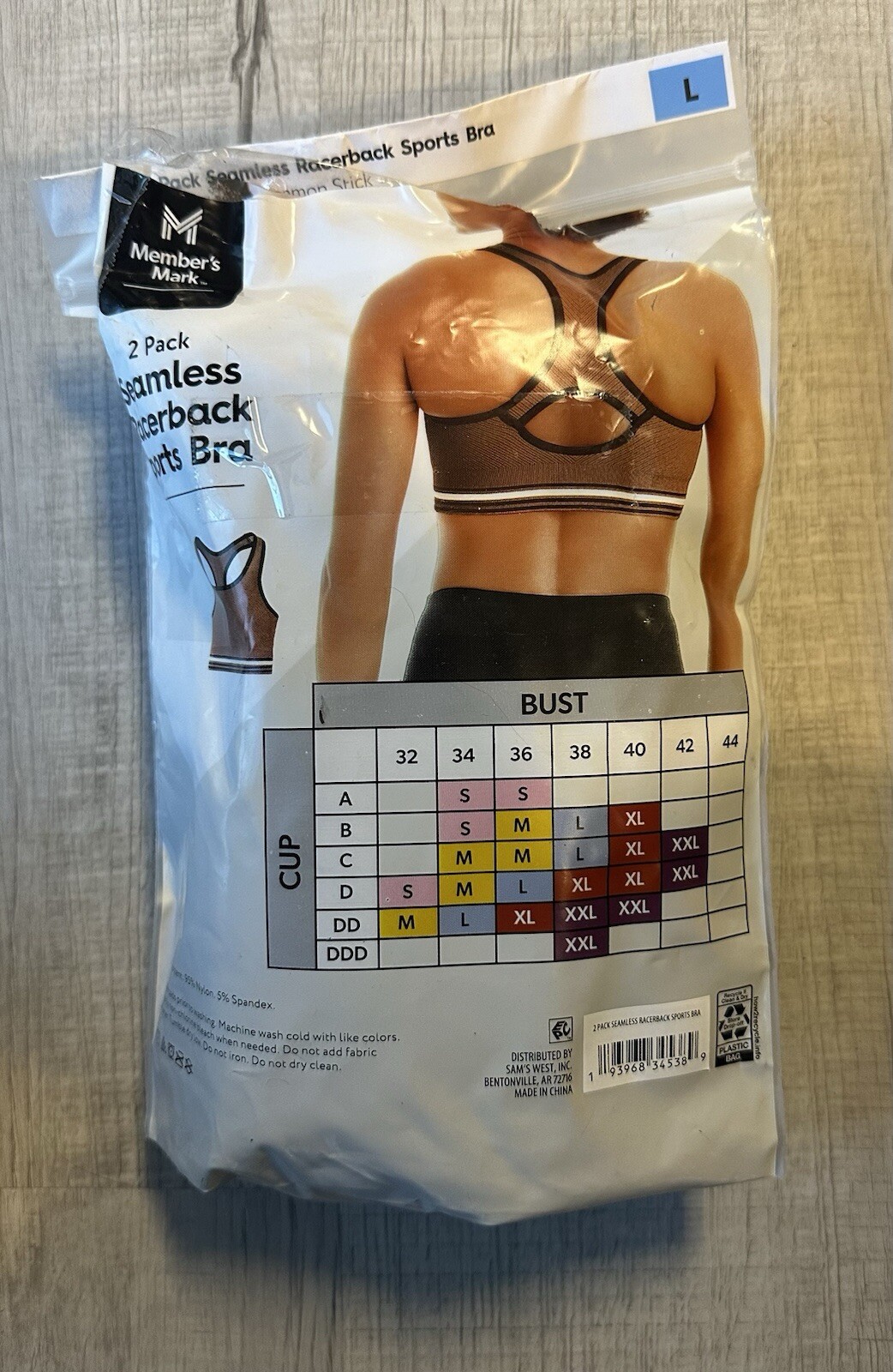 MEMBERS MARK 2 PK SEAMLESS RACERBACK SPORTS BRA SIZE L Pkg Open New