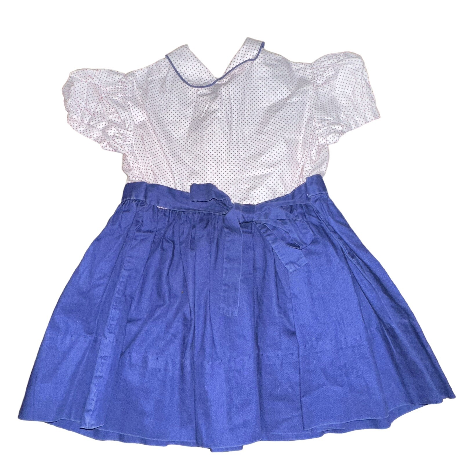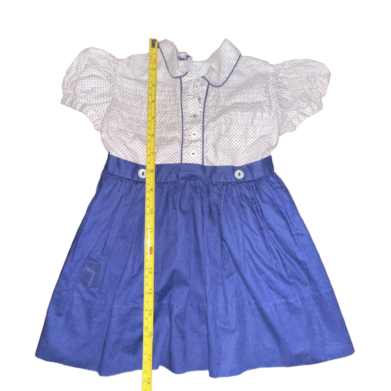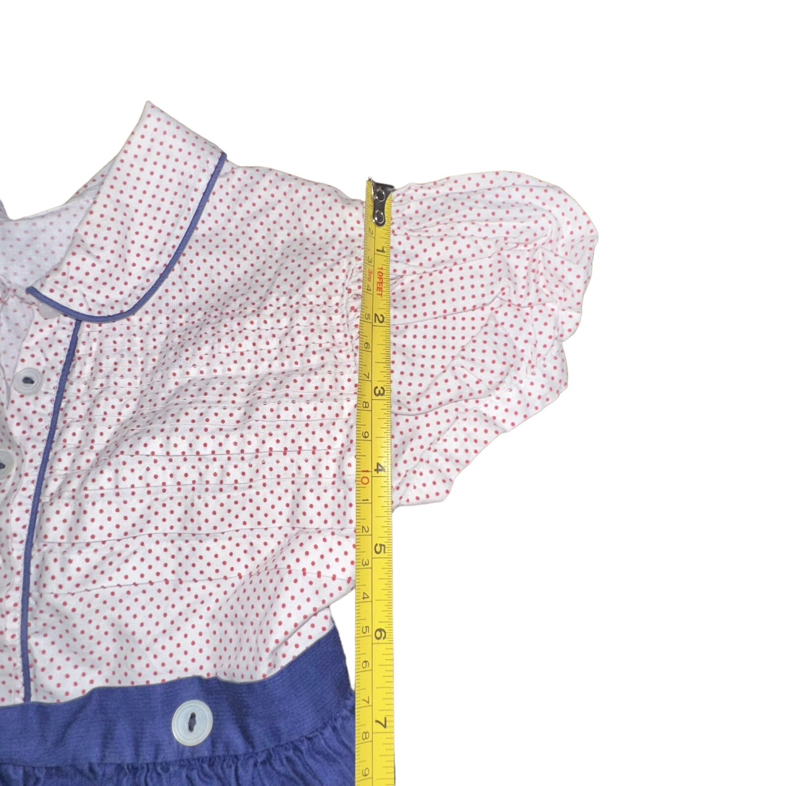 Vtg Girls Blue White Red Polka Dotted Toddler Sailor Tie Back Dress Handees 17
