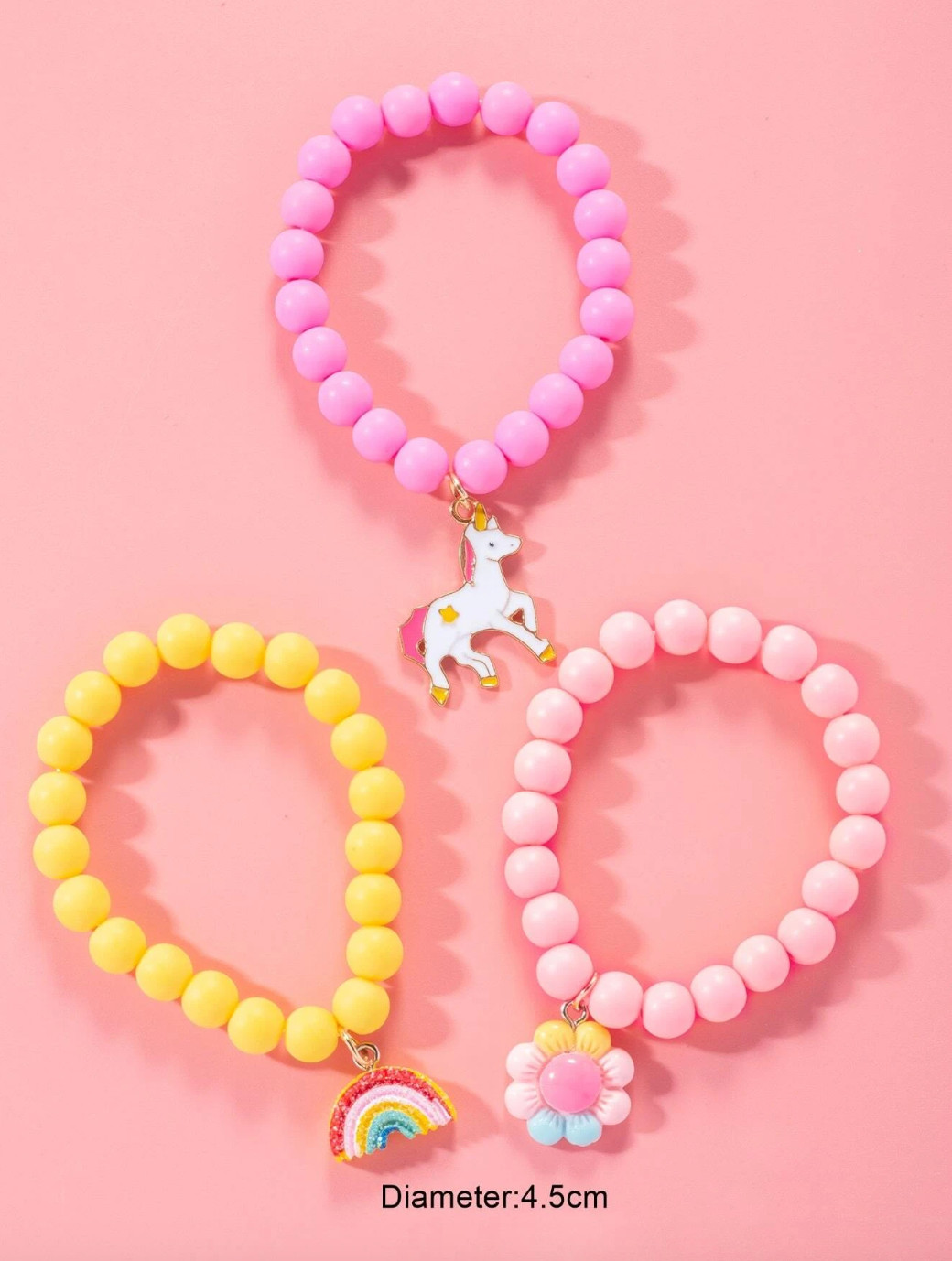 3pcs/set Cute Cartoon Unicorn Rainbow Decor Bracelet For Girls For Daily Decor