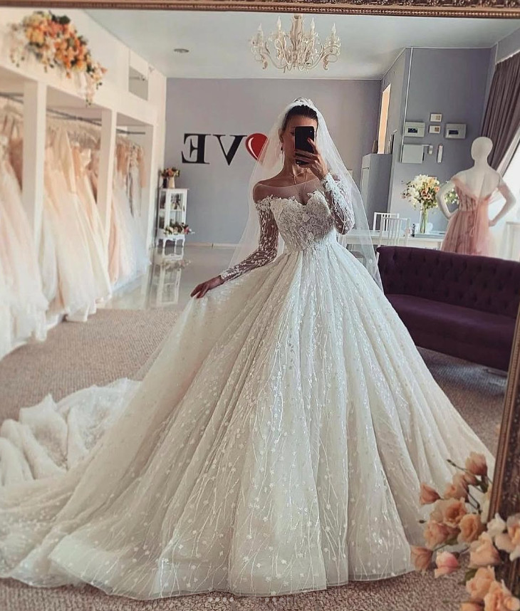 Princess Long Sleeves Wedding Dresses Off the Shoulder Lace Appliques Bridal