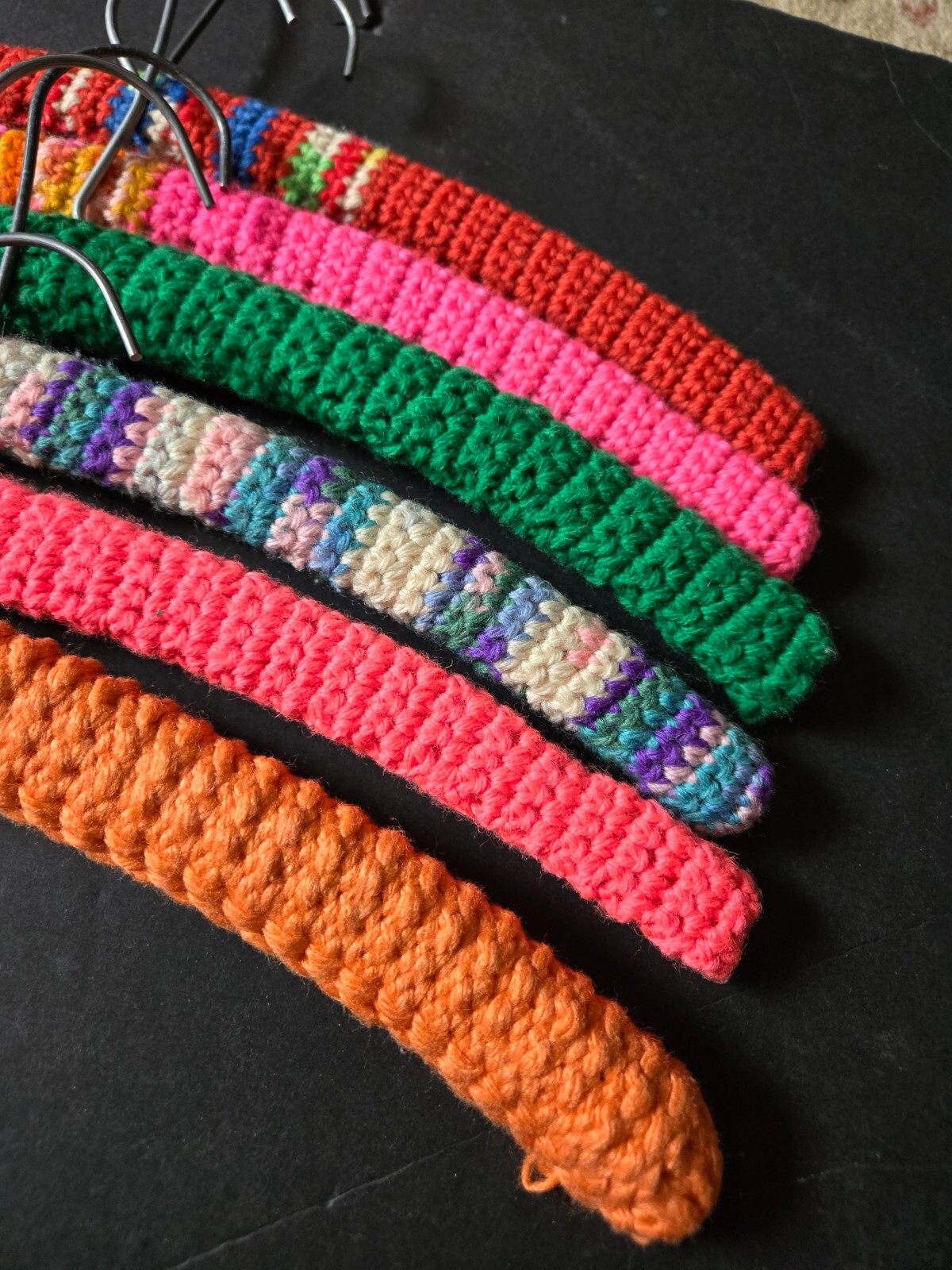 Vintage Lot of 6 Hand Crocheted Yarn Covered Clothing Hangers multi 6