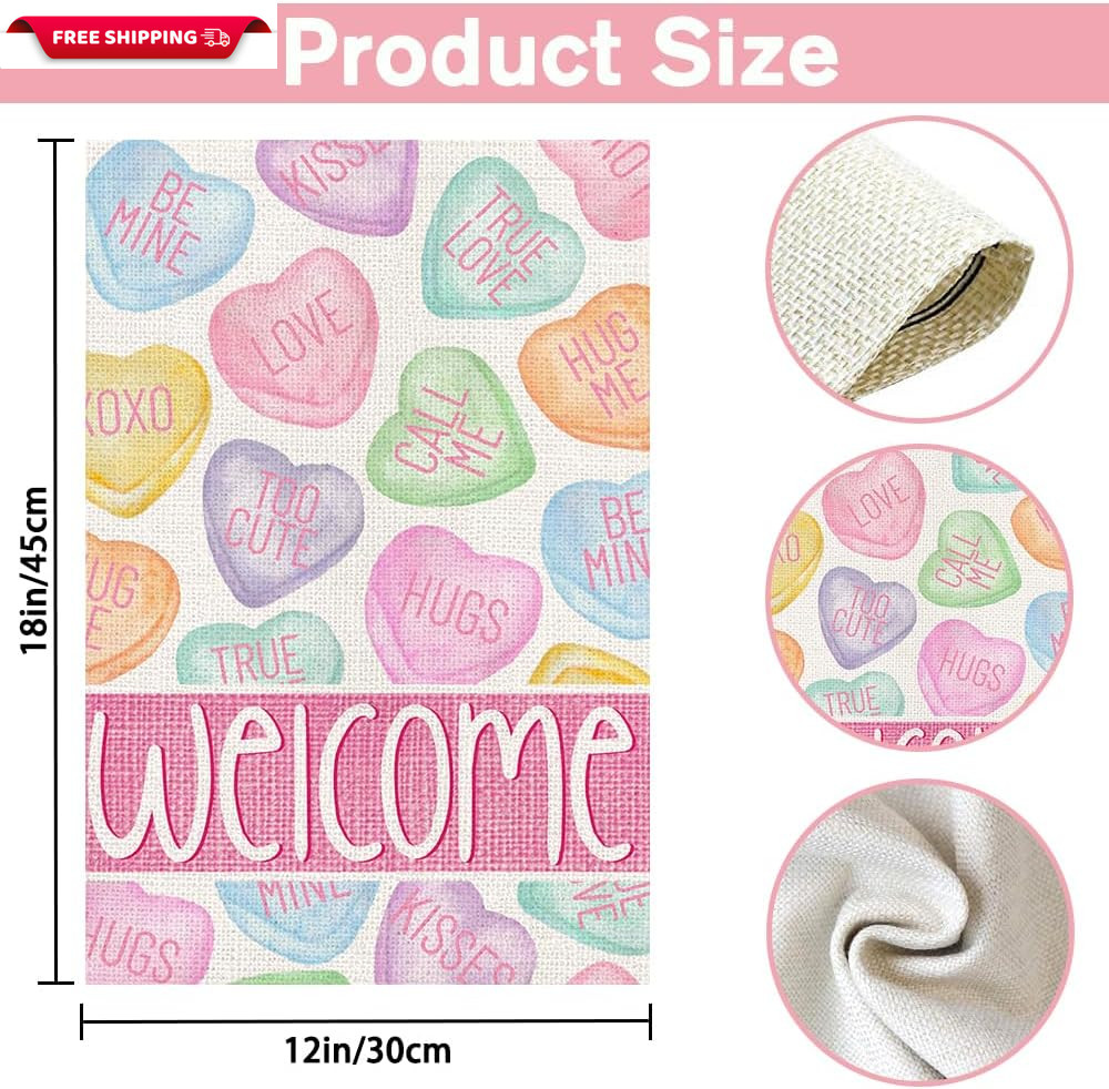 как выглядит ValentineS Day Garden Flag Double Sided,Colorful Candy Love Hearts Welcome Smal фото