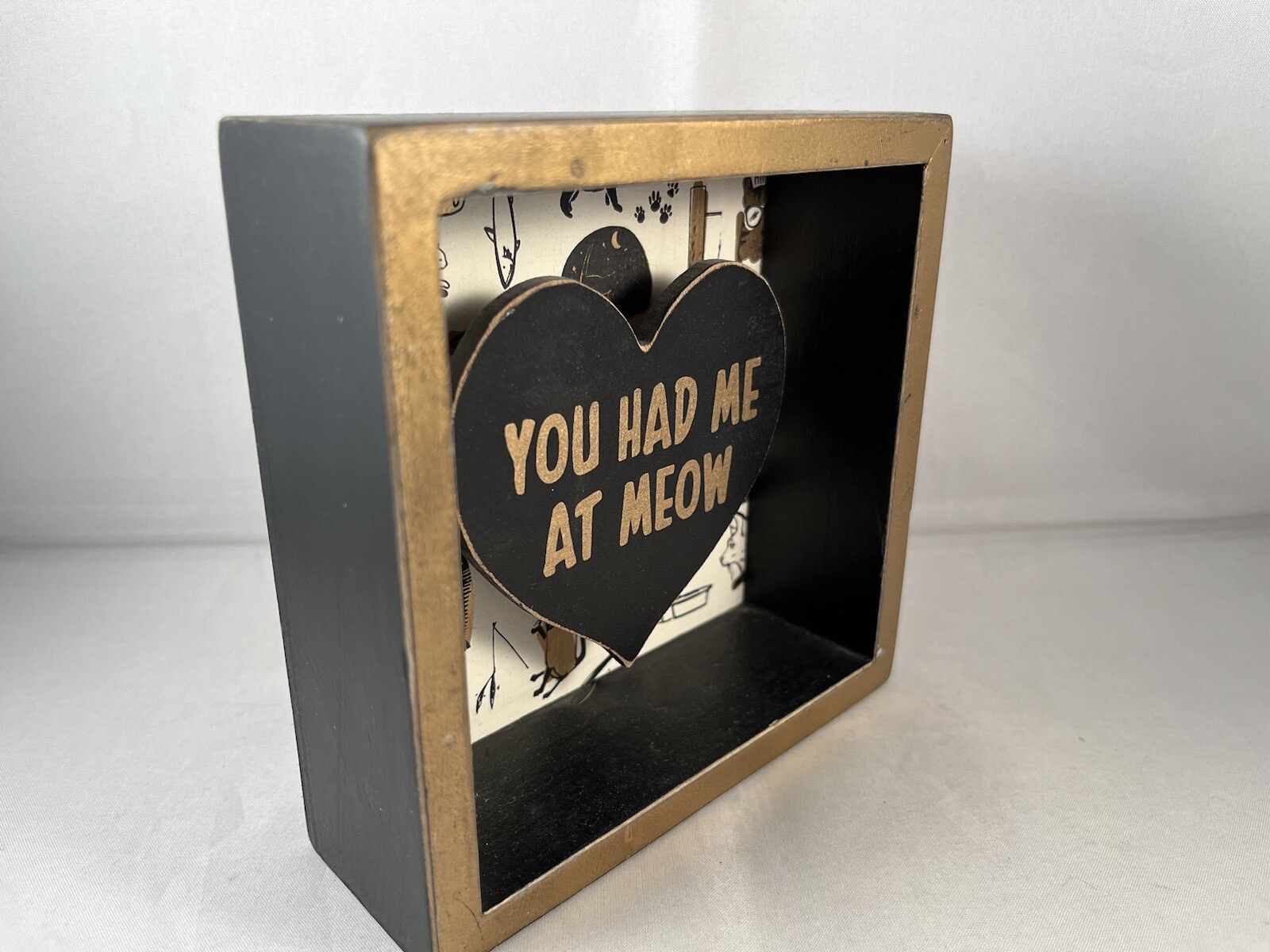 Cat Kitten You Had Me At Meow 3D Primitives by Kathy Wooden Box Sign Home Decor