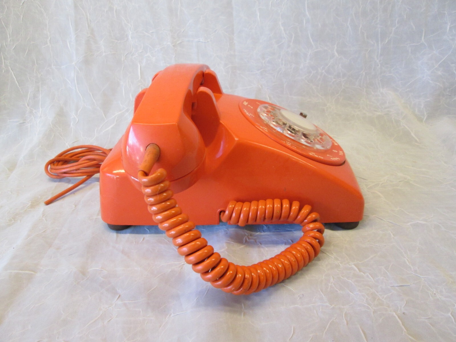 Vintage ITT Orange Table Desk Rotary Dial Telephone Phone