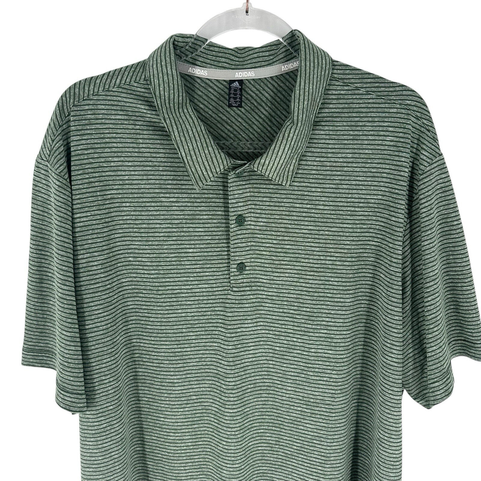 Adidas Golf Polo Shirt Mens 2XL Green Feeder Striped Short Sleeve NEW 65