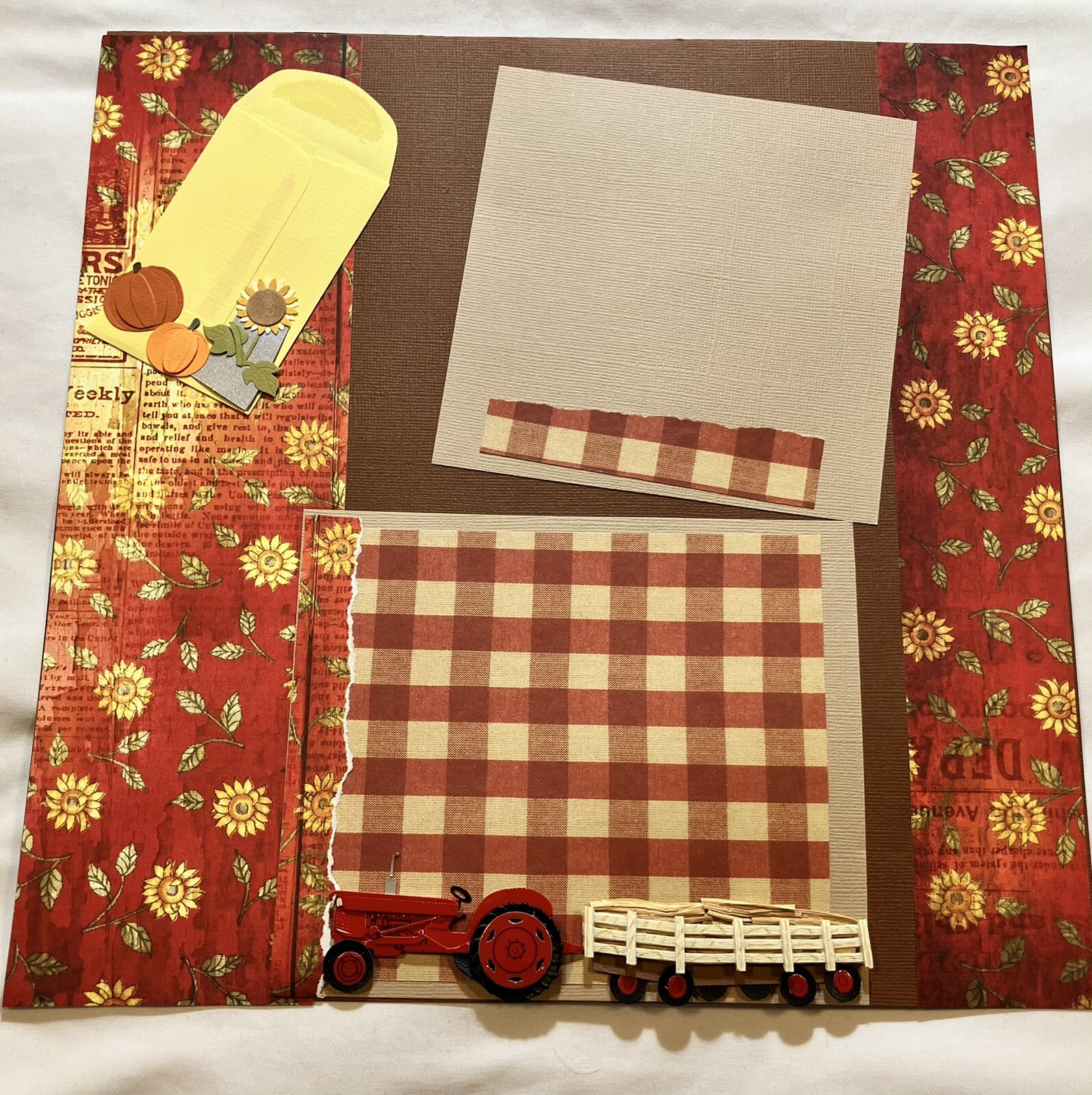 как выглядит Handmade 2 12"x12" Premade Scrapbook Pages Layout Harvest Festival Hayride фото