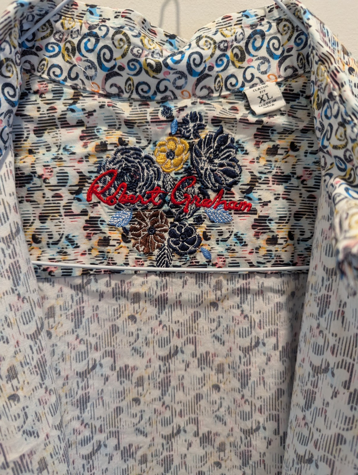 как выглядит Robert Graham Shirt Xl White Abstract Flip Cuff Button Up Long Sleeve Mens фото