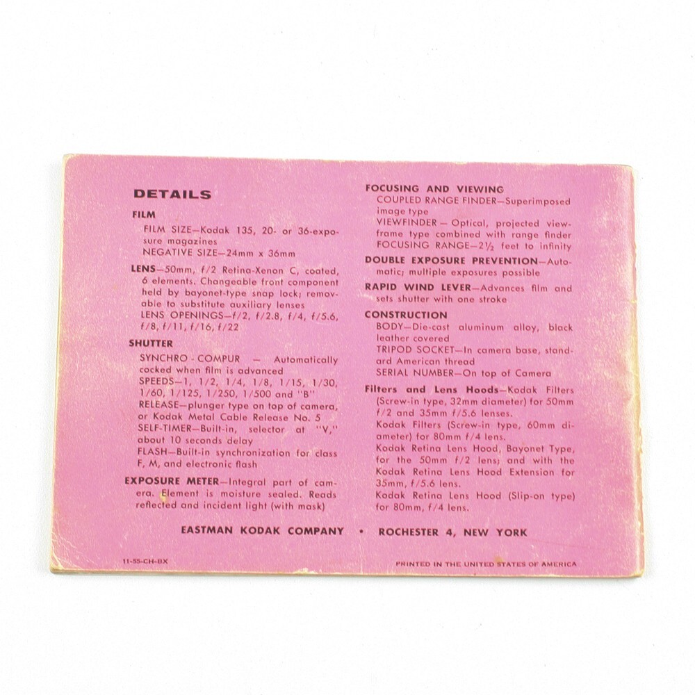 Kodak - Retina IIIc Camera Manual - Vintage Instruction Booklet - 1955