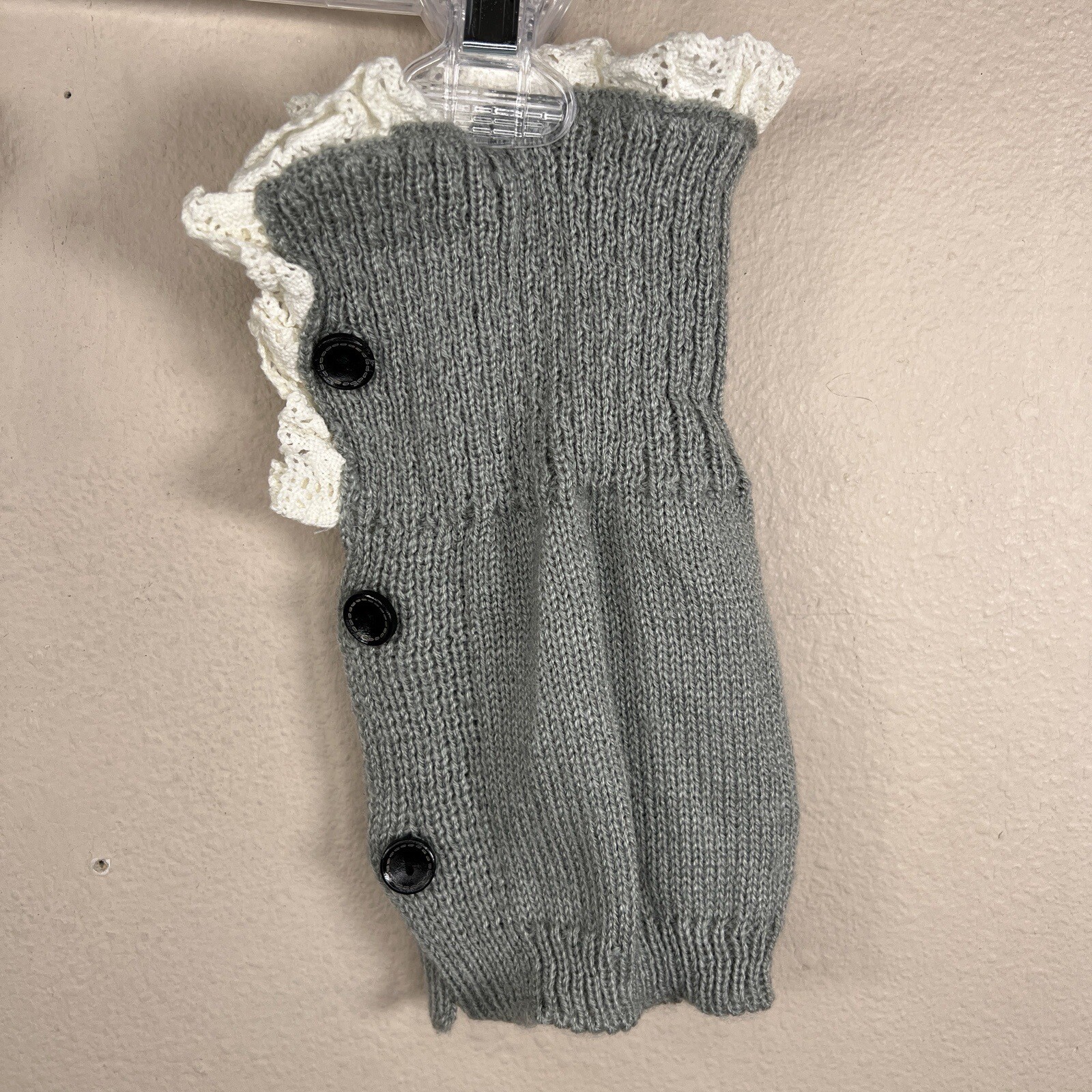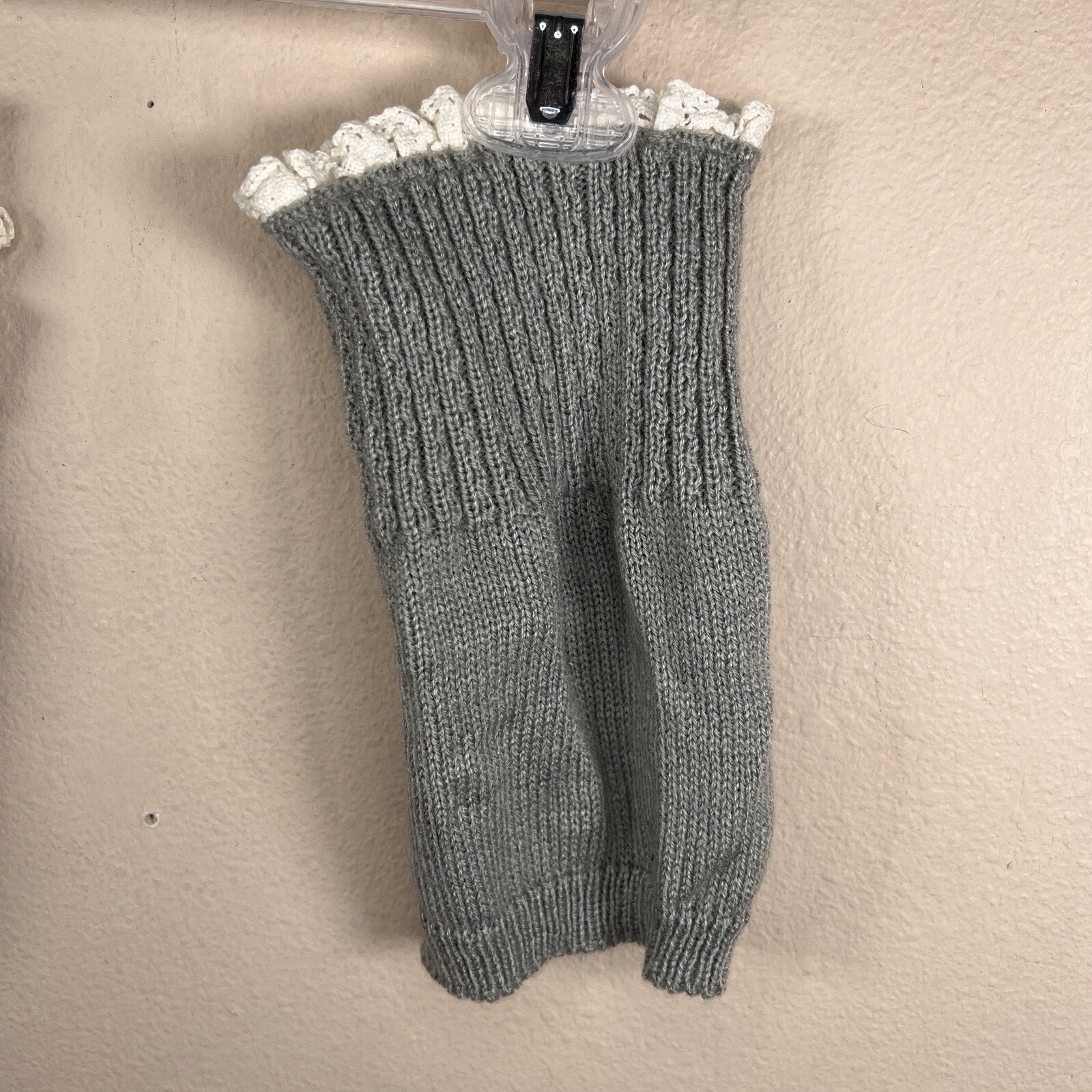 GREY LEGWARMERS BOOT CUFF IVORY LACE ACCENT STRETCH COZY