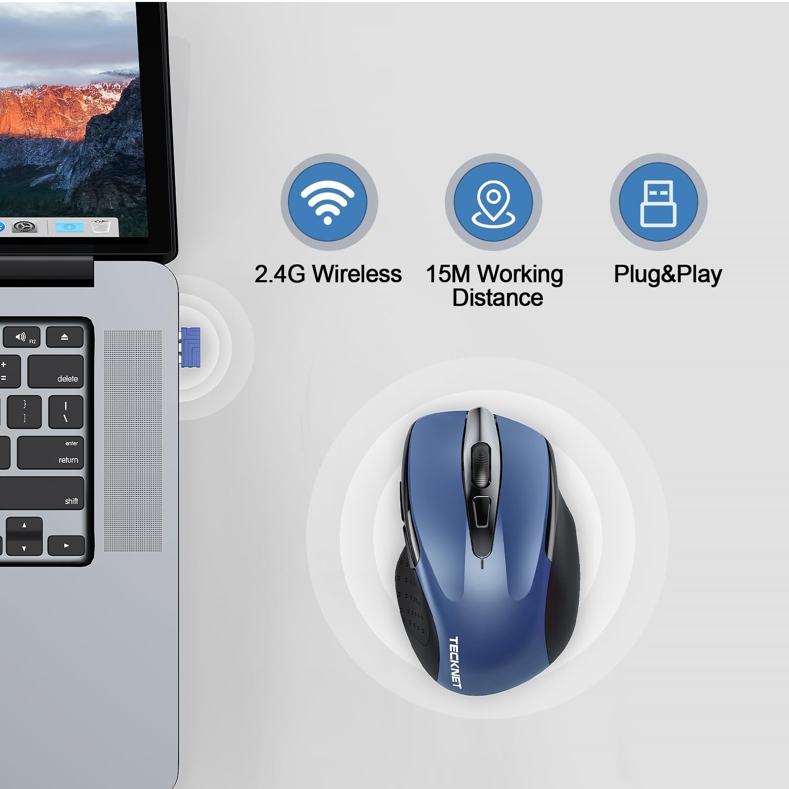 как выглядит TECKNET Rechargeable Wireless Mouse, 2.4G Silent Mouse, Quiet Click, 6 Adjust... фото
