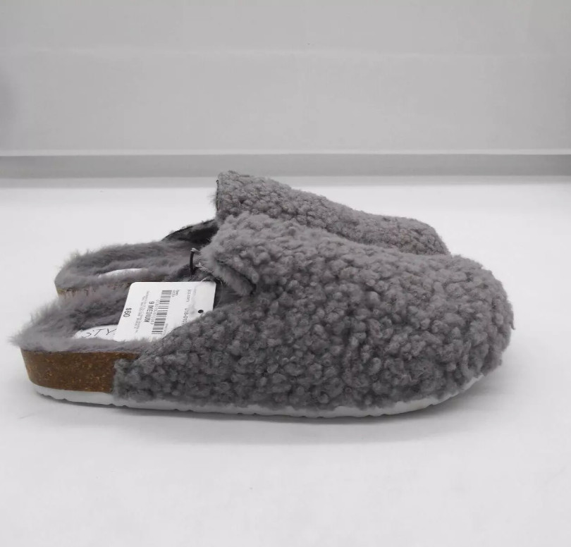 Stylus Dix Gray Faux Fur Clogs Mules Slip On Shoes Slippers