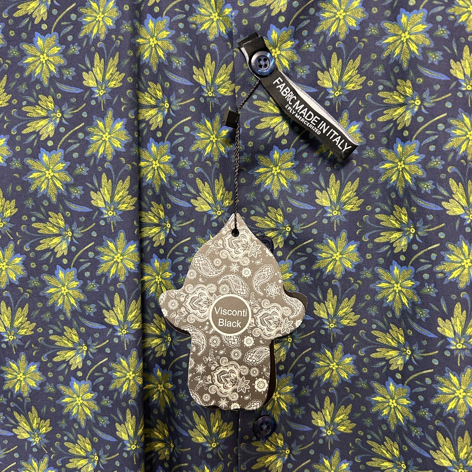как выглядит Visconti Black Leo Tailored Fit Long Sleeve Shirt Mens Size M Floral Print NWT фото