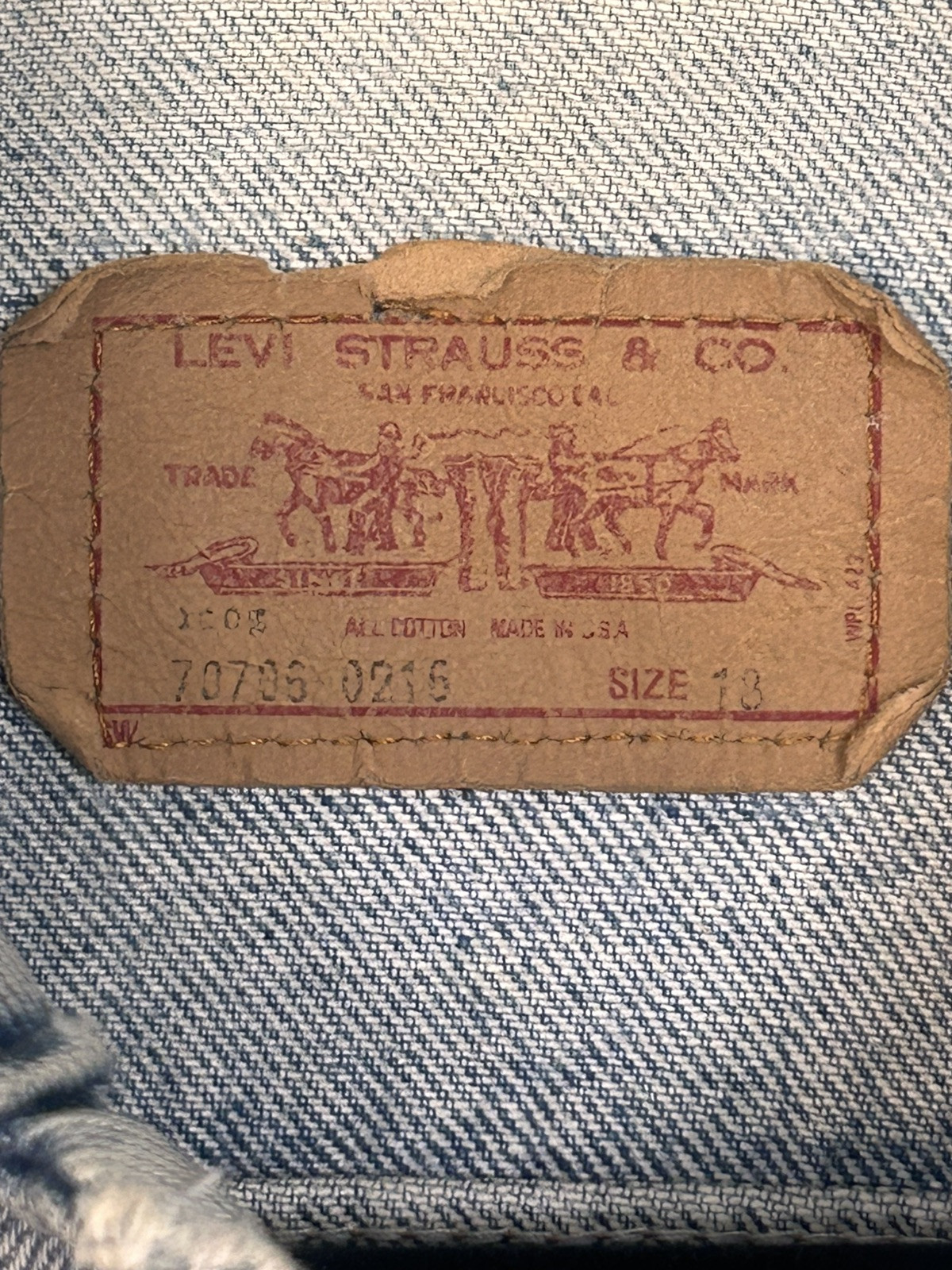 Vintage Levi's Jean Denim Trucker Distressed Jacket Youth 18 USA 70706 0216