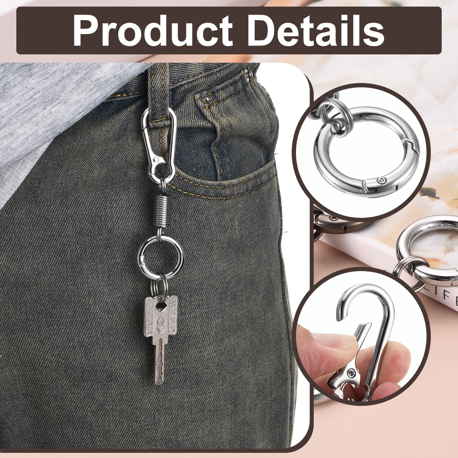 Spring Double Ring Keychain Dual Key Chain Ring Holder Silver, Pack of 2