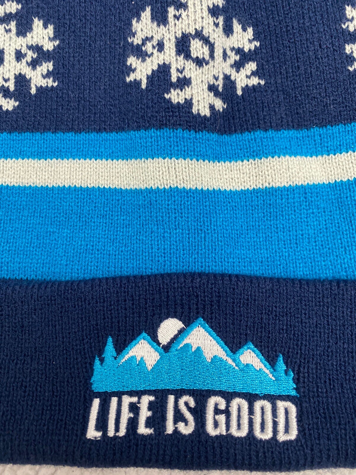 life is good Winter Knit Hat Pom Pom Blue Embroidered Adult One Size