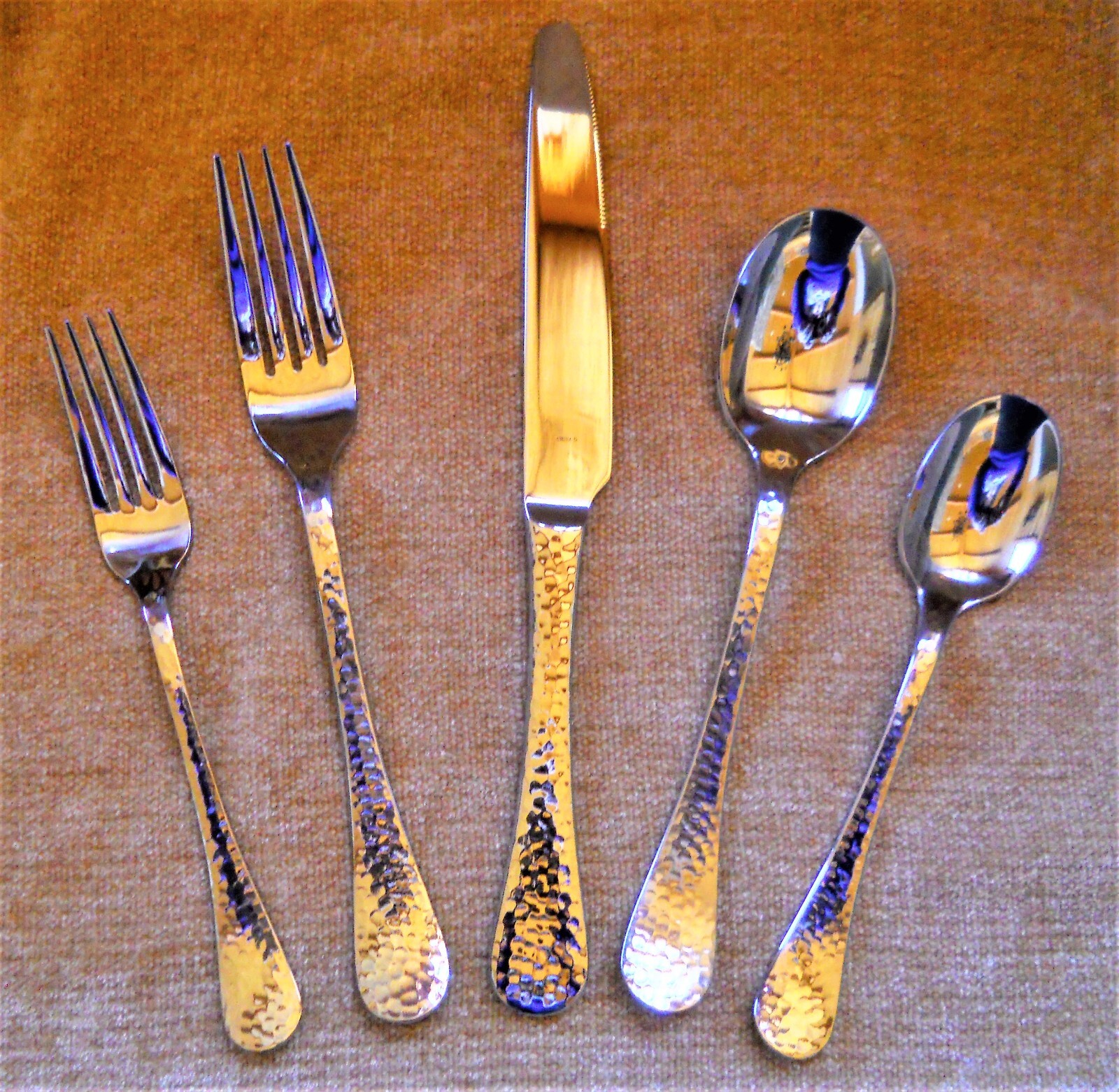 Ginkgo 42-Pc Lafayette Hammered Stainless Steel Flatware Set NEW