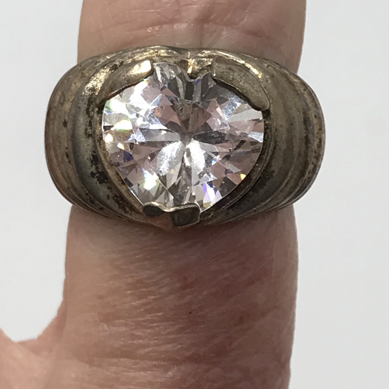 Vintage 925 Sterling Silver Heart Shape Cubic Zirconia Stunning Ring sz 6
