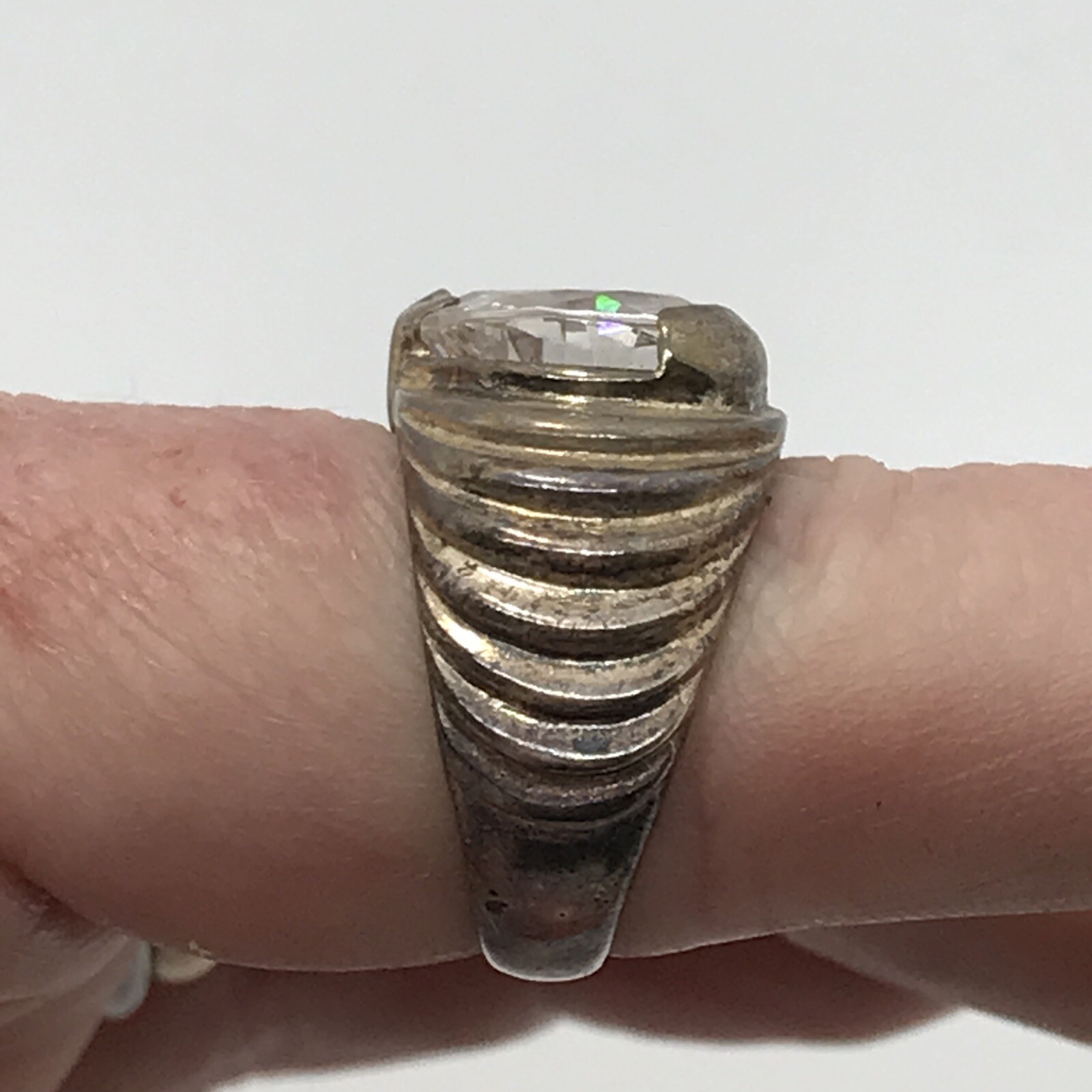 как выглядит Vintage 925 Sterling Silver Heart Shape Cubic Zirconia Stunning Ring sz 6 фото