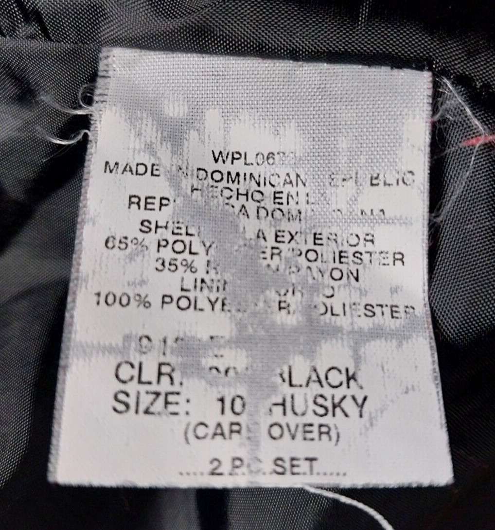 Van Heusen boys 10 Huskey 3pc suit black pin stripe jacket pants shirt